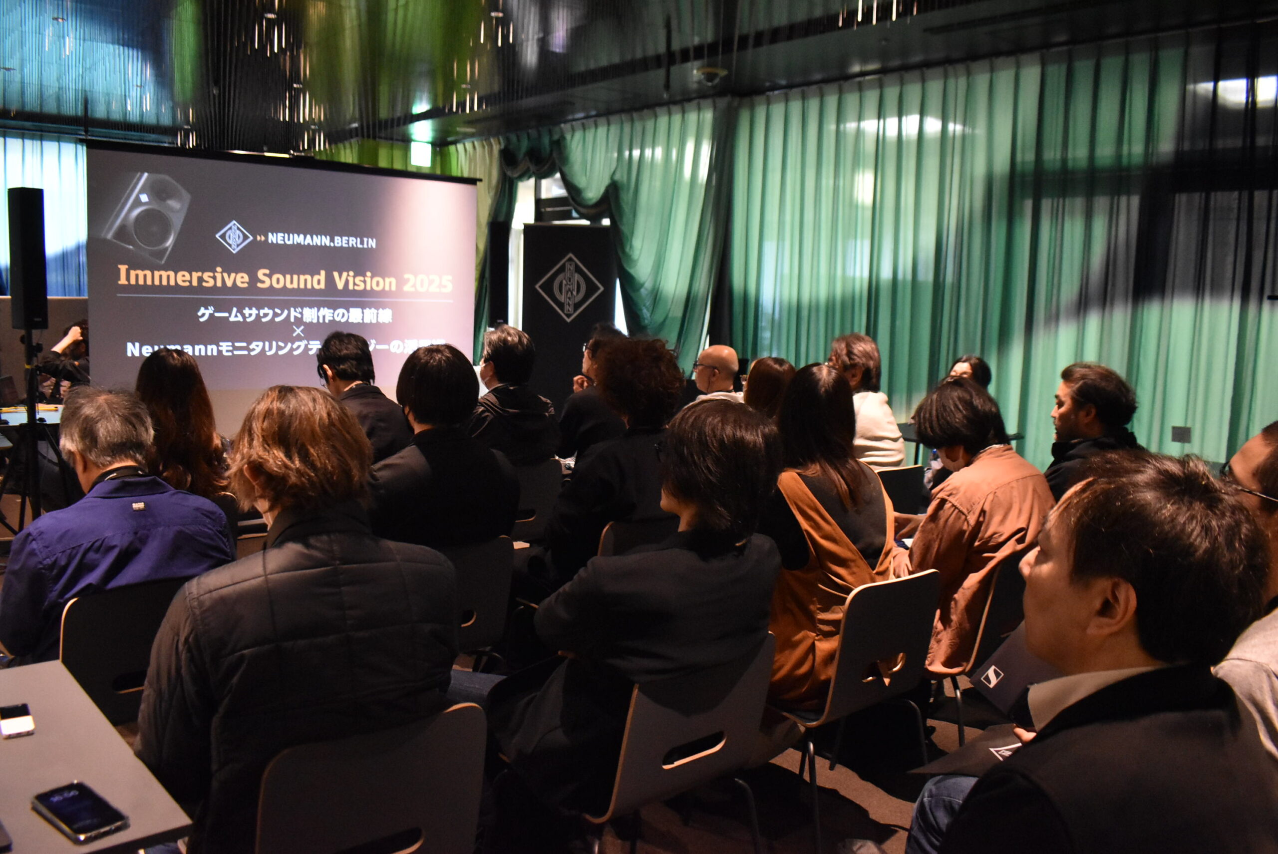 先日、東京・青山にあるゼンハイザージャパンにおいて、「Immersive Sound Vision 2025~ゲームサウンド制作の最前線xNeumannモニタリングテクノロジーの活用術」と題したセミナーが行われました。そのセミナー講師となったのはゲーム作品を中心としたサウンド制作会社である株式会社ノイジークロークのレコーディグ/ミキシングエンジニア、込山拓哉さん。ここではノイジークローク社内に先日完成したDolby Atmosスタジオについて、そのスタジオ作りの過程や、こだわった点、またスタジオ作りにおいて難しかった点、スタジオ完成後の課題などが紹介されました。