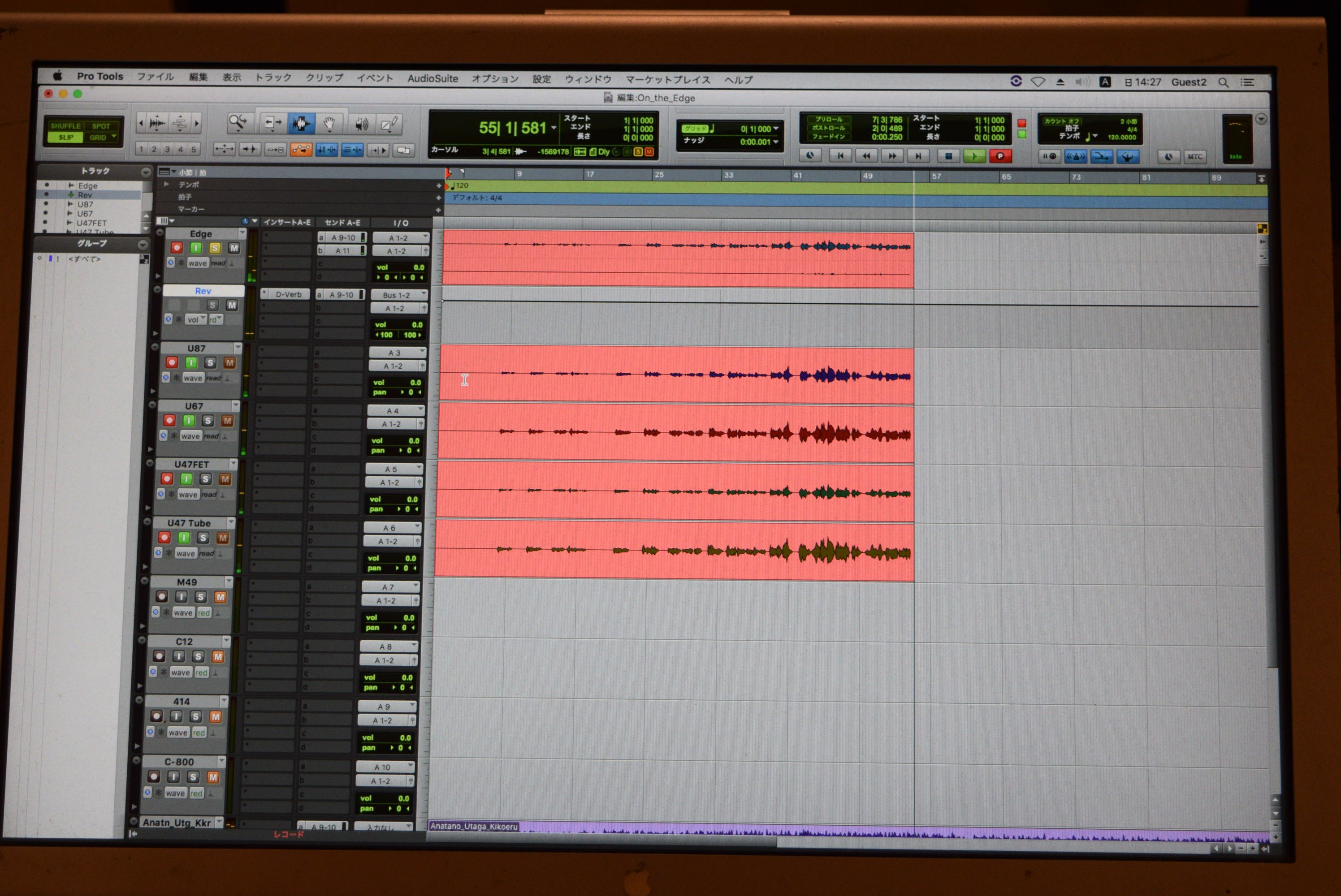 複数マイクから入力された音をProToolsに同時にレコーディングしていった