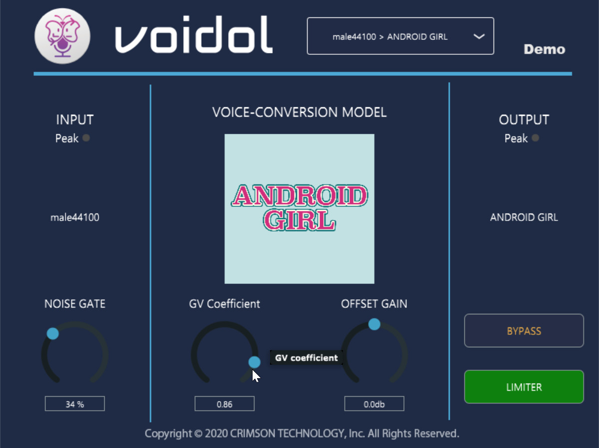 1月16日にスタートしたThe 2020NAMM Showで、日本のクリムゾンテクノロジーが、「Voidol -Powered by リアチェンvoice- VST Plugin版」(以下Voidol VST)のプロトタイプを発表しました。Voidol VSTは以前に「VTuberに超強力兵器が誕生!リアルタイムに自分の声をキャラクタボイスに変換できるソフト、Voidolが960円で発売開始!」、「VTuberのための悪魔のアイテム、VoidolがついにWindowsに対応。標準搭載のイケメンボイスの新キャラクタも追加に」といった記事でも紹介したことのあるリアルタイム音声変換ソフト、VoidolのVST版。