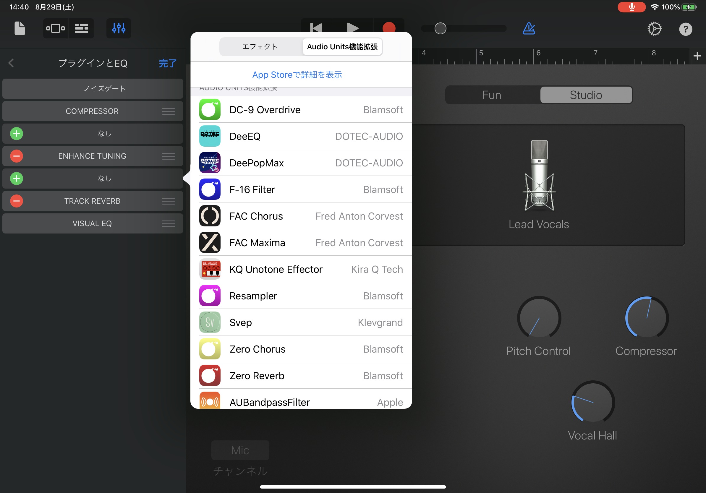 ただ、DeePopMaxもDeeEQも、Appleの新しい仕組みにのっとったAudio Units V3という規格のアプリなので、起動の仕方が難しいというネックがあります。そう従来のエフェクトアプリと違って単体で起動することはできません。必ずホストアプリが必要となり、その中でプラグインとしてDeePopMaxやDeeEQを起動させる必要があるのです。