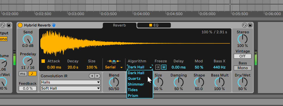 コンボリューションリバーブとアルゴリズミックリバーブを組み合わせたHybrid Reverb