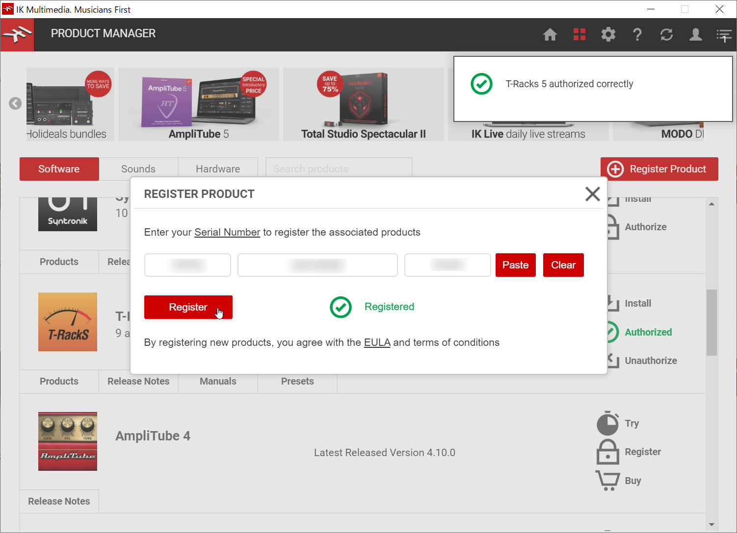 IK Product Managerに戻り、シリアルナンバーをペーストして、Registerをクリックします。