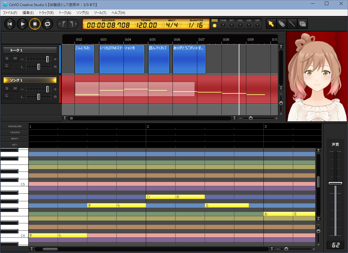 しかし改めてチェックしてみたら、昨年11月にCeVIO Creative StudioからCeVIO Creative Studio Sへと進化して、音質も向上するとともに、ライブラリ単独での発売もされていたんですね。先週にはVOCALOIDのIAの発売元である1st PLACEからもトークボイス「ONE -ARIA ON THE PLANETES-」が発売になるなど、結構動きがあるようでした。そこで、改めて最新版をインストールして少し試してみました。
