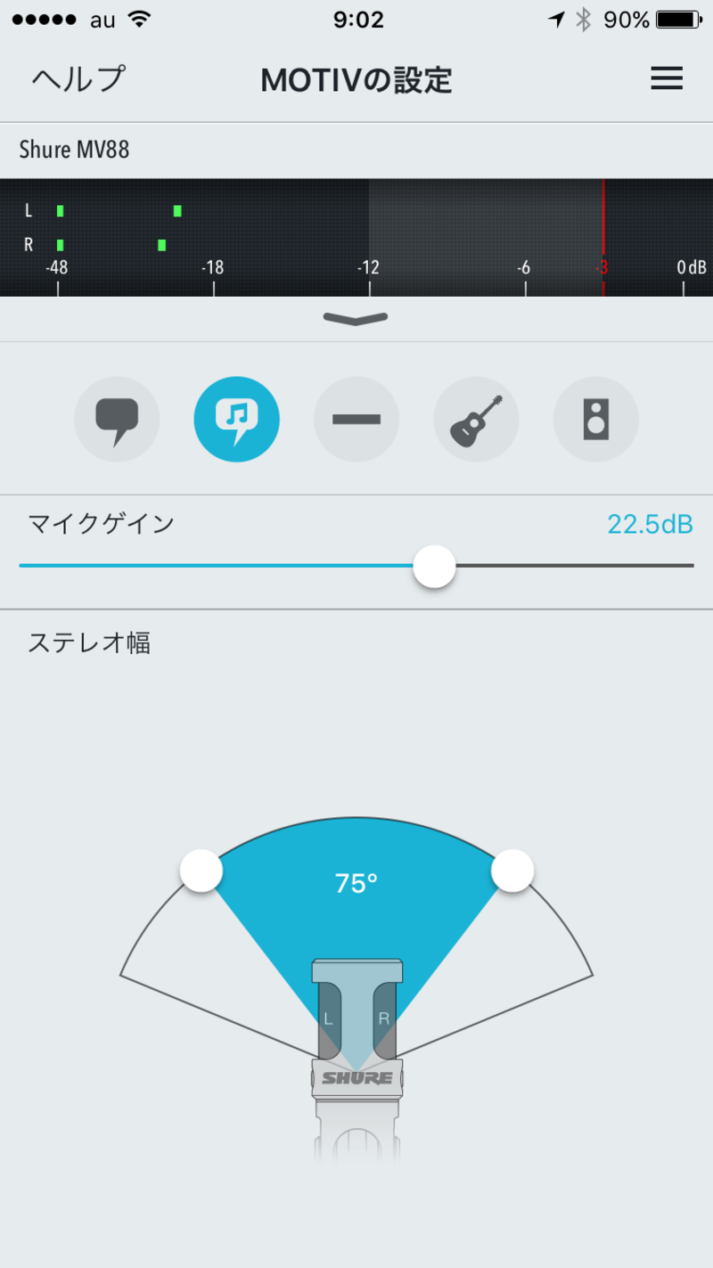 指向性などを自由に調整できるアプリ、ShurePlus MOTIV