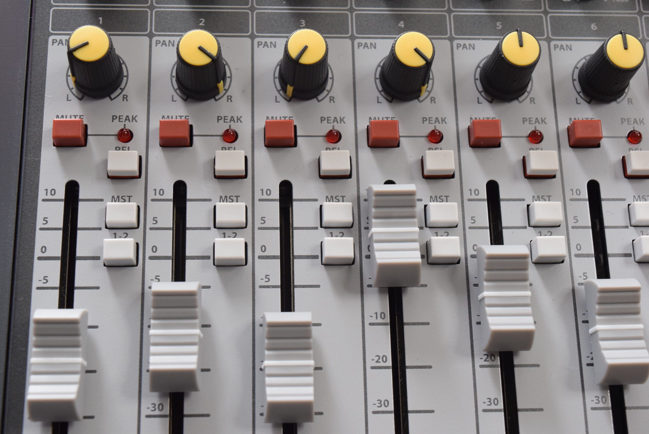 まずはマイクやギターを接続して、モニタースピーカーやヘッドホンから音を出してみようと思ったのですが、それなりに大規模なコンソールなんで、ちゃんと手続きが必要になるんですね。コンデンサマイクは+48Vのファンタム電源をONにし、マイクプリアンプのゲインを上げていく必要もあります。