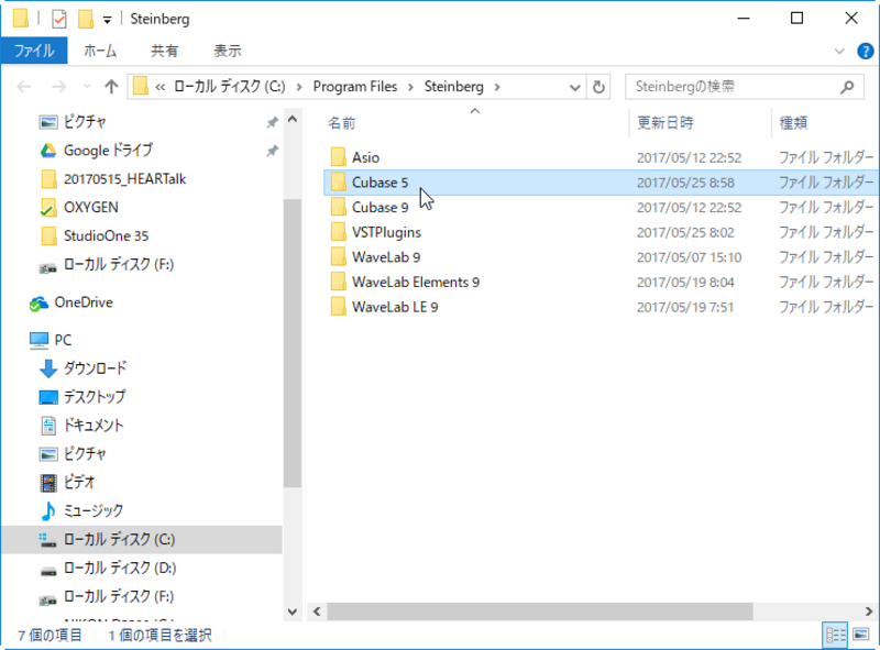 Cubase 5フォルダにインストールされてしまうOxygenCubaseDirectLink.dllファイルを移動させる