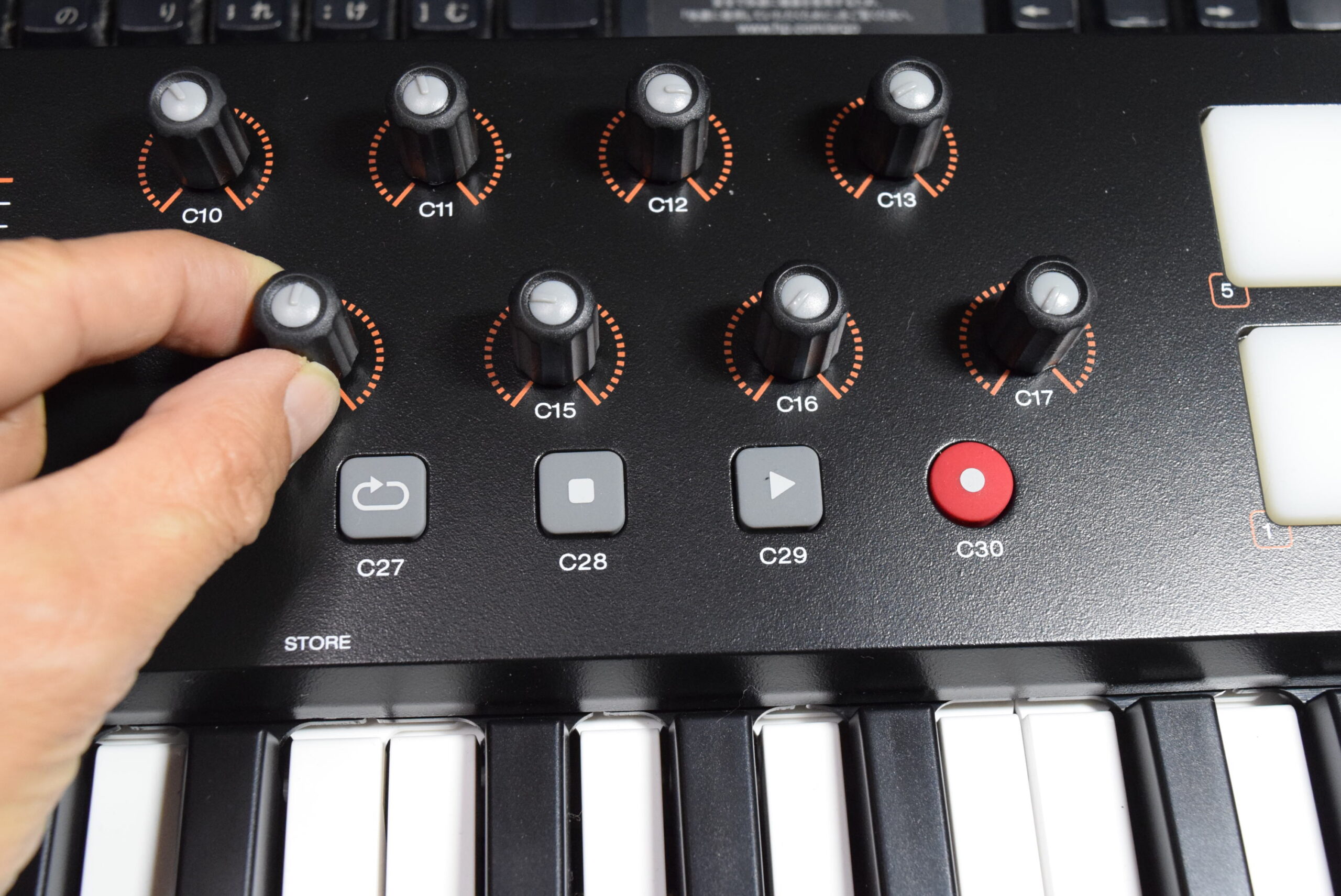 これらの写真を見てみるとわかる通り、OXYGENシリーズは鍵盤だけでなく、コントロールサーフェイスとしても使えるのが大きなポイントとなっており、いろいろなボタンやフェーダー、ツマミなどが並んでいます。