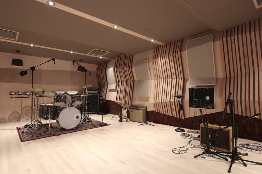 ご覧いただくと分かる方もいると思いますが、ここはBeach BoysがレコーディングしたWesternのStudio3によく似ています。ここは小さなロックンロールルームであり、中にいるとオフィスビルにいるという事実を完全に忘れることができますよ。ここにボーカルブースがあって、この壁の反対側には、ビデオ制作ルームがあり、たくさんのビデオを製作するためのグリーンバックのスクリーンがあります。カメラもあるので、バンドの撮影も可能です。多くのApolloアーティストセッションもここで行っているのです。