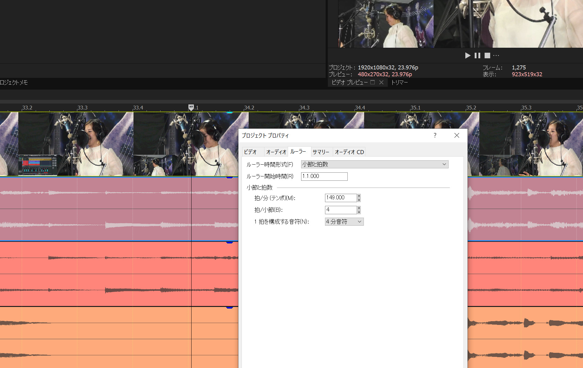 その最大の理由は、VEGASがDAWに非常に近いビデオ編集ソフトであり、タイムラインを小節・拍で表示できたり、MIDIを使って外部のDAWやシーケンサと同期できたり、オーディオをマルチトラックで並べてVSTプラグインのエフェクトをかけて……といった操作ができるからです。