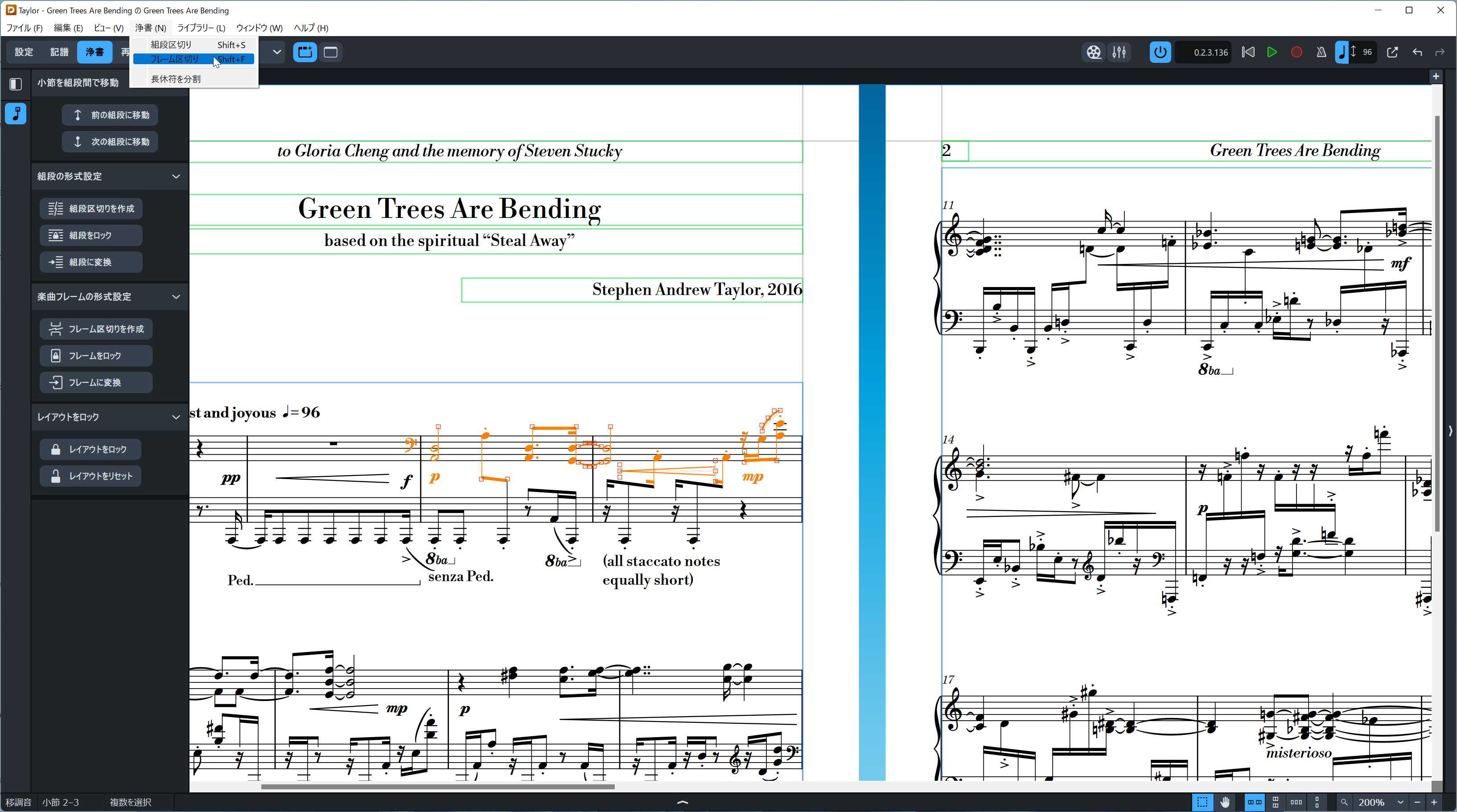 またDorico 4では一般的なフレーズ変形技法の転回・倒置・反転などがスムーズに行えるようになっています。プラグインやアドオンではなくソフトウェア本体に実装されているため、音符自体だけでなく、スラー・強弱・奏法などの記号も含めて変形させることが可能なのです。音楽を音階から別の音階に変換したり、複雑な音高のマッピングも、ポップオーバーからわずかなキーボード入力で行えます。