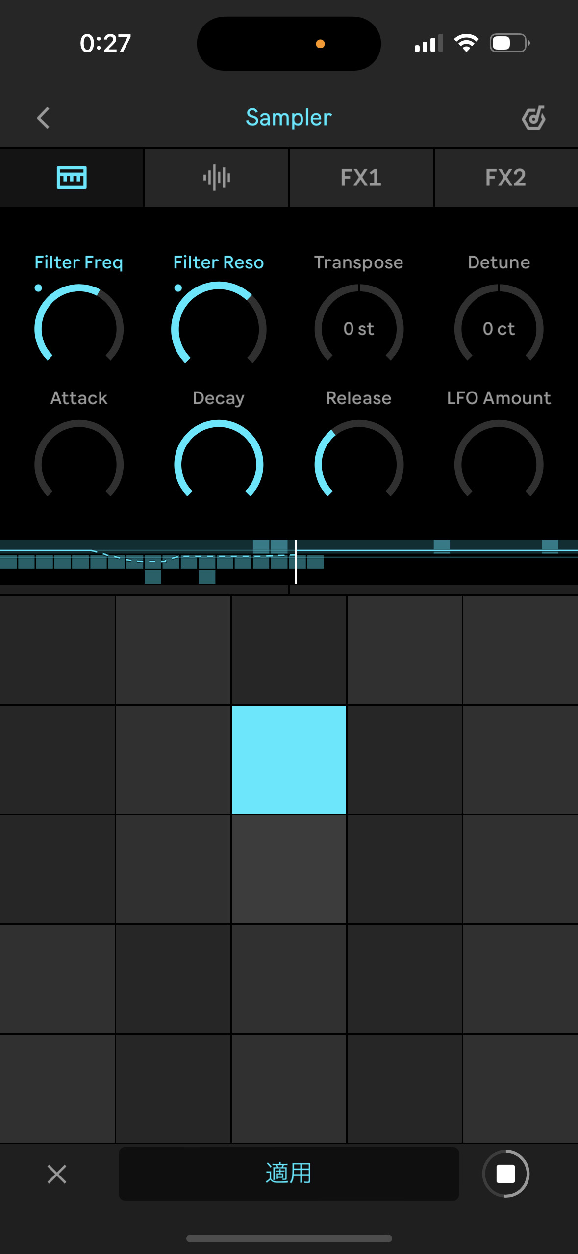 各プリセット音源でもサンプリングした音に対してもフィルタやエンベロープなどの調整が可能