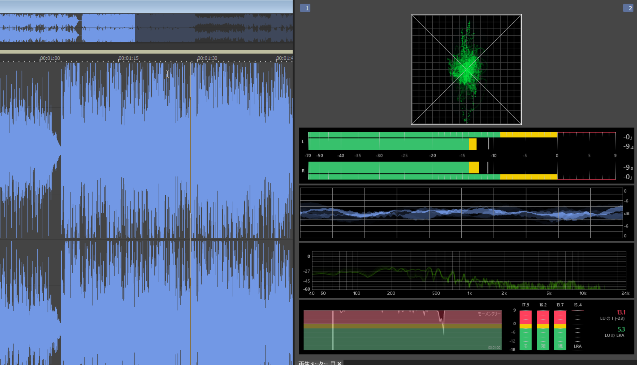 またスペクトル分析したり、ピークメーターで見たり、フェーズスコープで見たり……などなどさまざまな見方ができるほか、人口知能を使用してどこがボーカルなのかを視覚化する…なんて便利な機能も搭載されています。