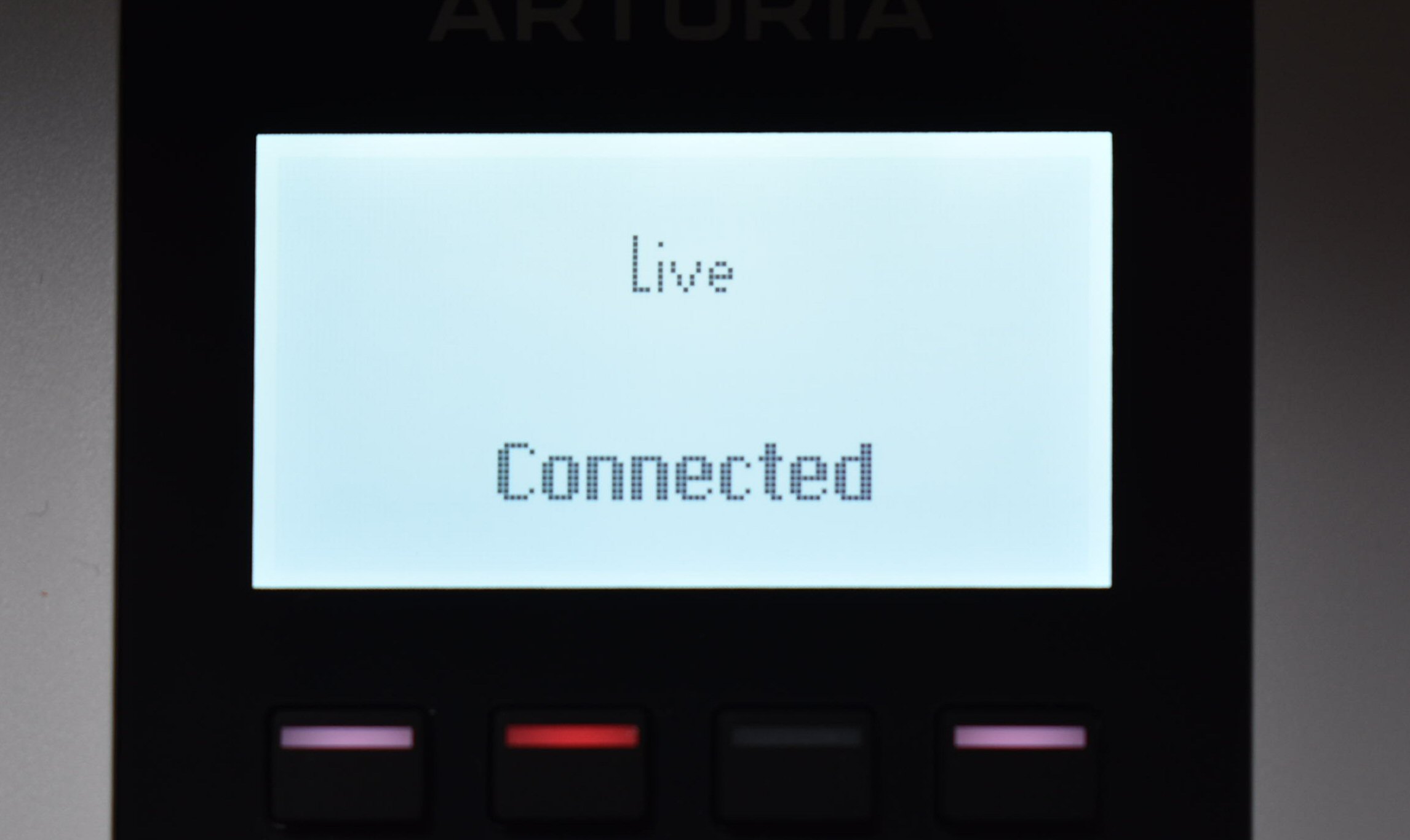 どういうことなのか、もう少し具体的に見ていきましょう。最初に試してみたのがAbleton Liveでした。というのも、後述の通り、KeyLab Essential mk3にはAbleton Live Lite 11がバンドルされているので、これなら一番相性がいいのでは…と最新版のAbleton Live 11をインストール。そのうえで、とくにドライバなどの設定も何もなしに、USBでKeyLab Essential mk3をパソコンと接続した上で、Ableton Liveを起動してみると……、そう、液晶ディスプレイに「Live Connected」と表示されるんです。