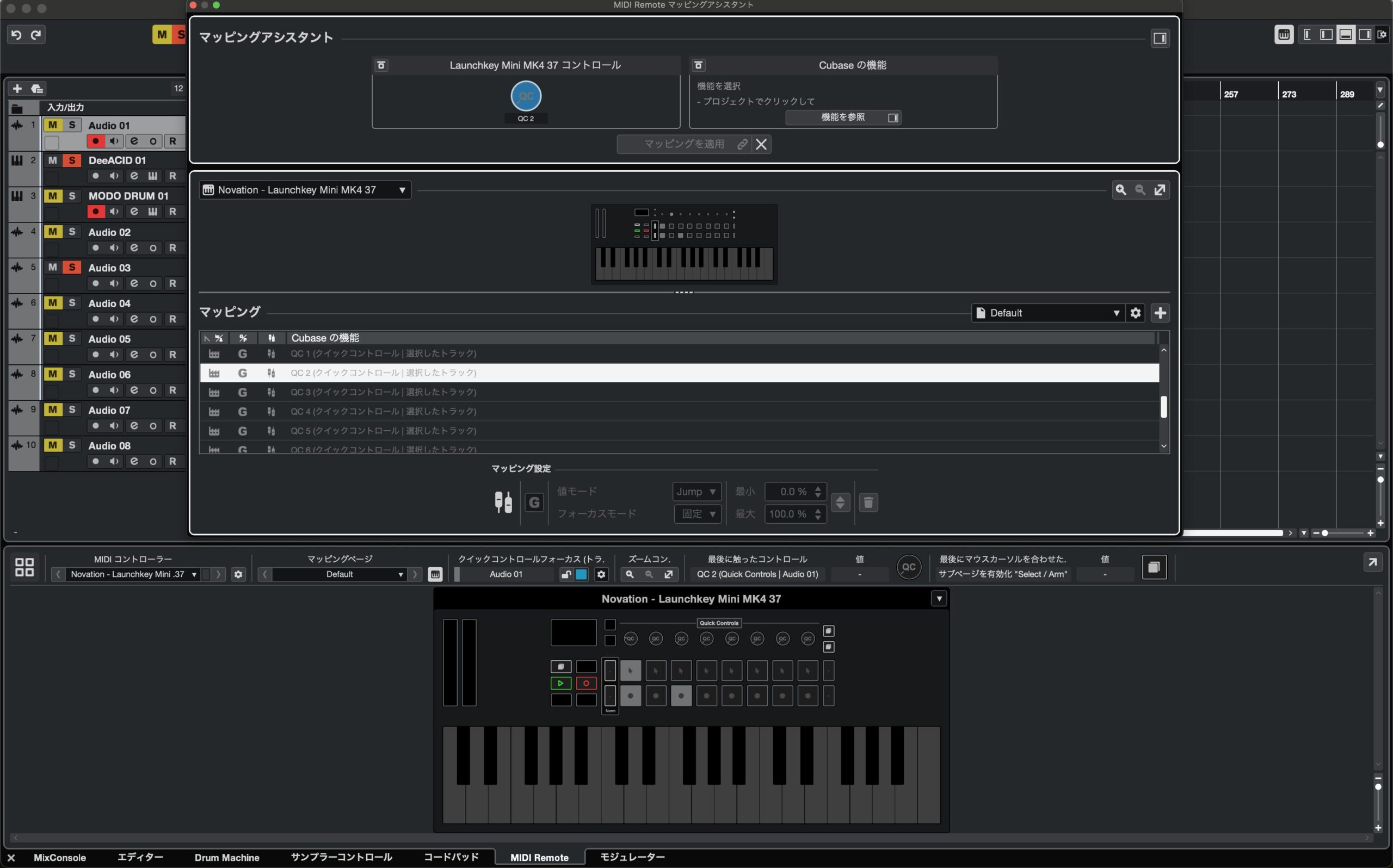 しかし、MK4が大きく進化したのは、Ableton Live以外のDAWへの対応を大幅に強化した点です。とくにCubaseとの連携は、今回のバージョンの目玉機能の一つといえるでしょう。Ableton Liveでの使用時と同様に接続するだけで、ミキサーのボリュームやパン、選択トラックのソロ・ミュート、さらにはプラグインのパラメータまで、Launchkeyのエンコーダやフェーダーで直感的に操作できるようになっています。