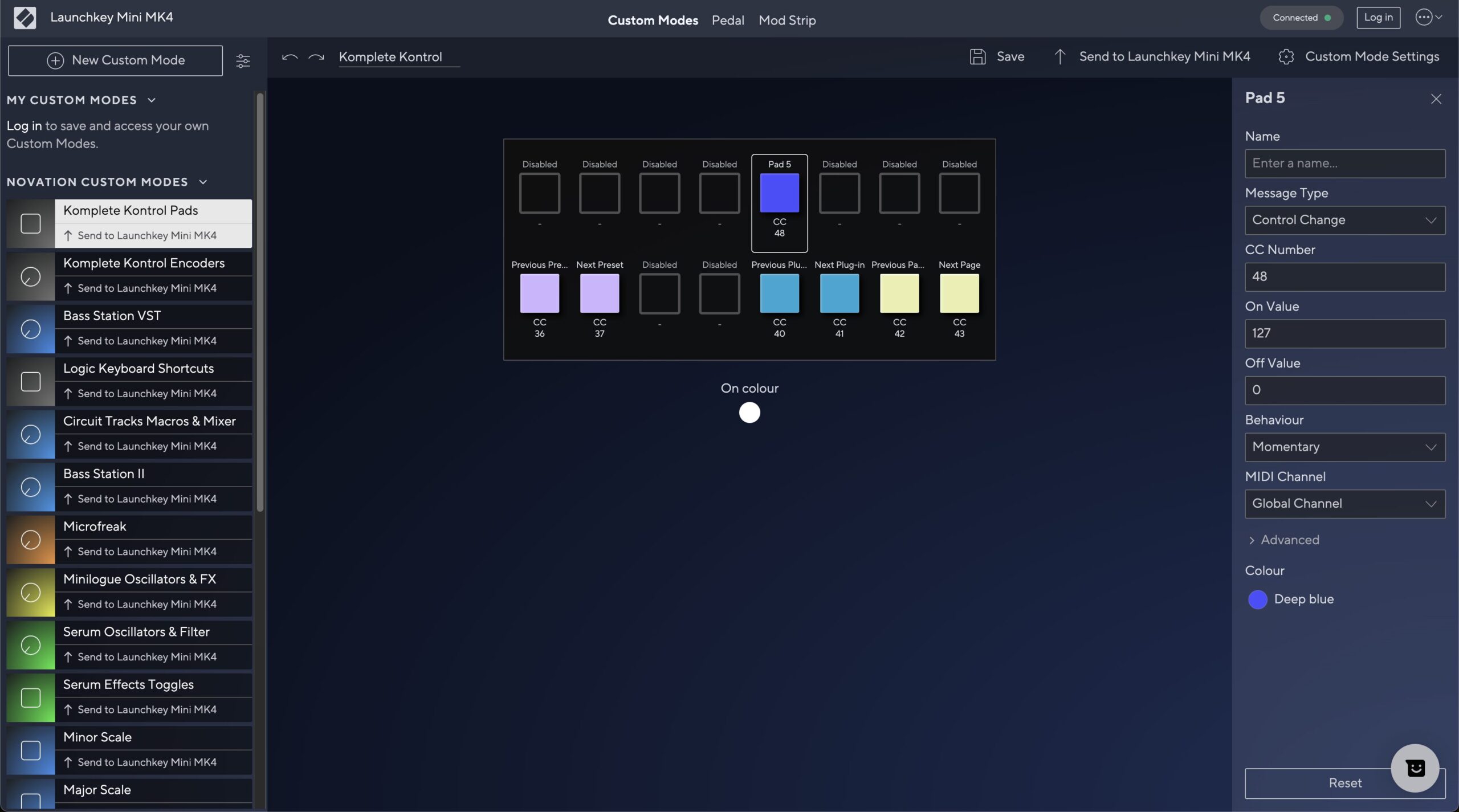 Launchkey MK4の柔軟性をさらに高めているのが、Novation Componentsというソフトウェアを使ったカスタムモードの存在。これはブラウザ上、またはスタンドアロンのアプリケーションとして動作するエディタで、Launchkeyのパッドやエンコーダー、フェーダーのMIDIアサインをユーザーが自由に設定できる機能となっています。