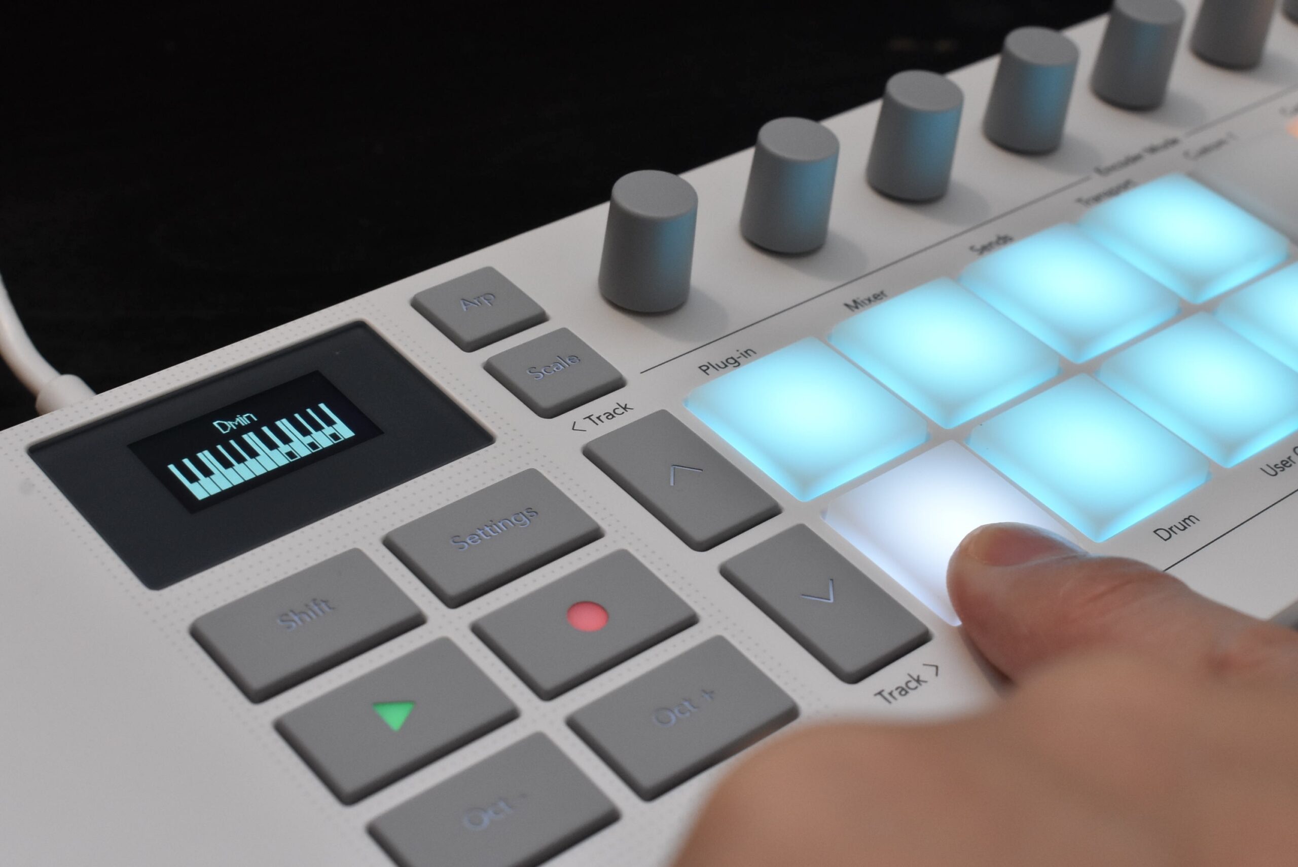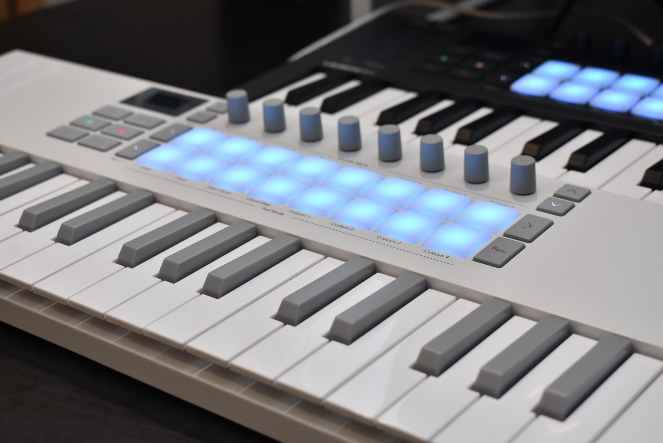 前モデルからは、単なるマイナーチェンジにとどまらない、根本的なアップデートが行われており、より表現豊かになった鍵盤やポリフォニック・アフタータッチ対応のパッド、視認性の高いOLEDディスプレイなどを新搭載。さらに、音楽理論の知識がなくても曲のアイデアがどんどん湧き出てくるインテリジェントなコード/スケール機能や、アルペジエーター機能など、クリエイティビティを刺激する機能も満載です。ラインナップも、コンパクトなMini 25鍵モデル(17,200円税込)から、本格的な演奏にも対応する61鍵モデル(42,900円税込)まで幅広く用意。今回実際に試してみたので、その実力をチェックしていきましょう。