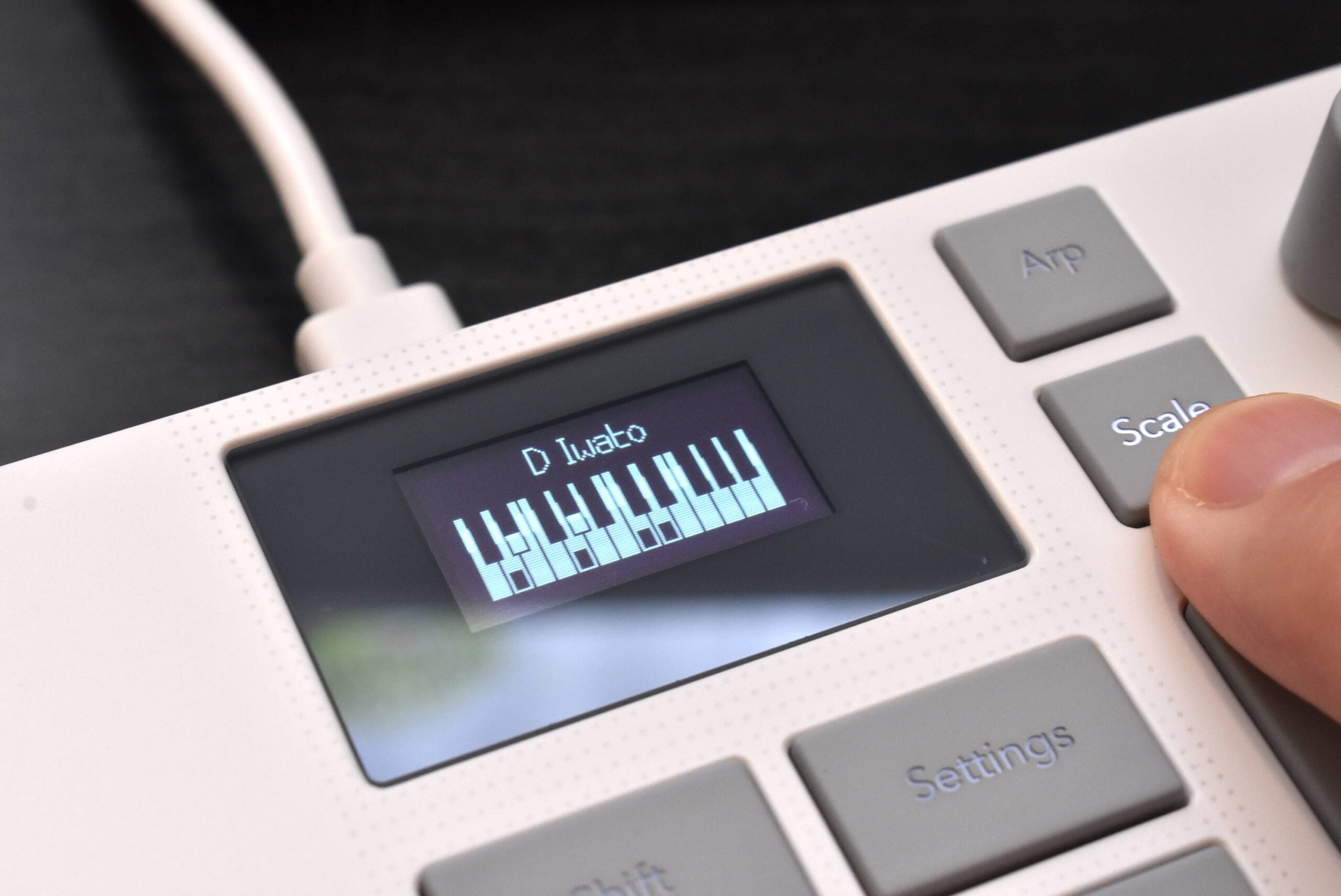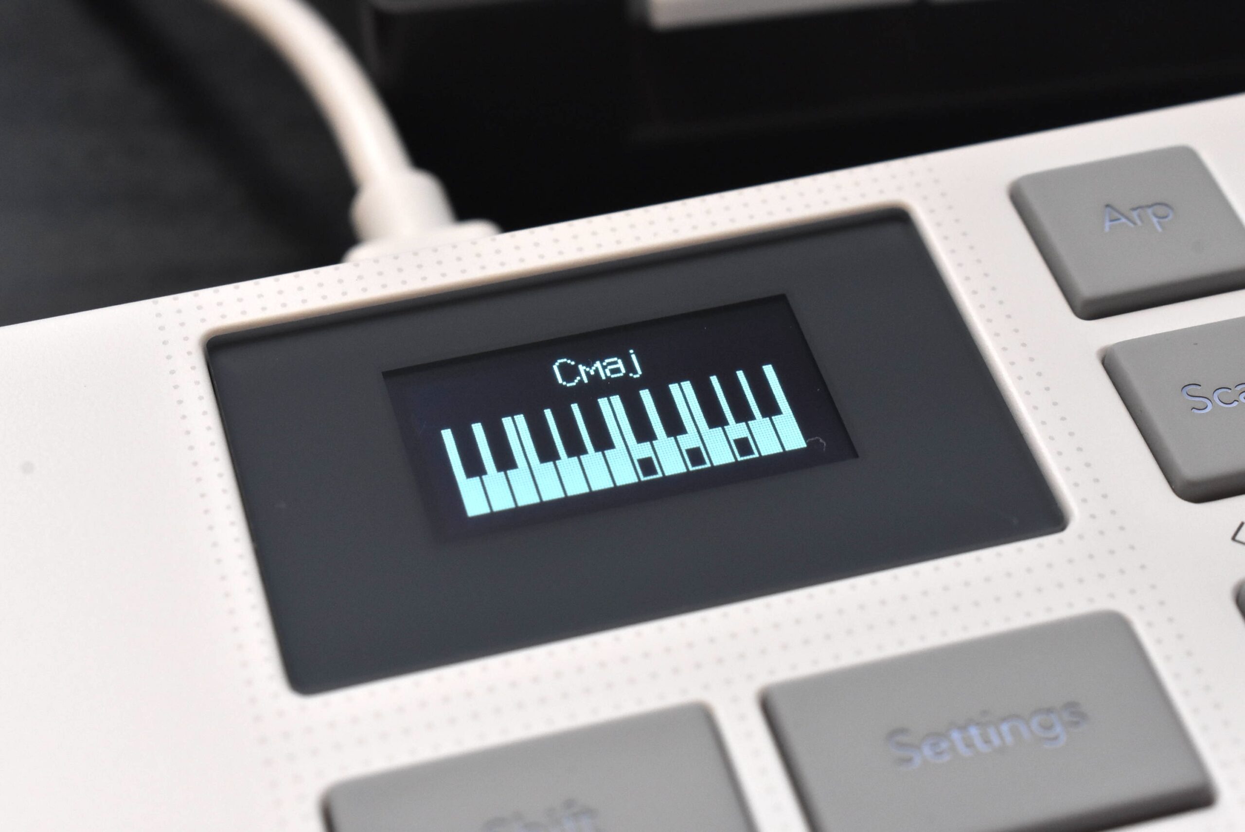 新たに搭載されたディスプレイも、制作フローの効率化に一役買っています。この有機ELディスプレイによって、操作しているエンコーダのパラメータ名や数値、選択しているスケールやコード名が手元で確認できるため、PCの画面に視線を移す頻度が減り、より演奏や操作に集中できるようになりました。