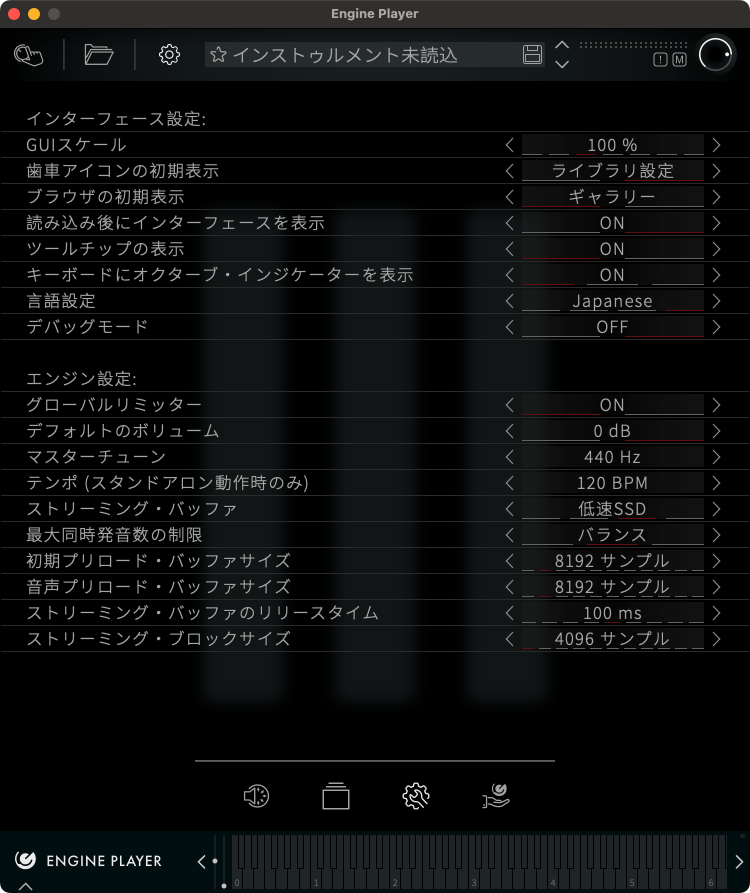 対応フォーマットはVST3、AU、AAXで、スタンドアロンでの動作も可能。さらに、Apple Siliconにもネイティブ対応し、プレイヤーの表示言語は英語、ドイツ語、中国語、そして日本語に対応しており、国内代理店であるSONICWIREが日本語化に協力している点も、日本のユーザーにとっては嬉しいポイント。既存の音源をENGINE PLAYERへ移植するにあたり、基本的なユーザインタフェースはオリジナルのデザインを踏襲しているため、過去のバージョンを使っていたユーザーも違和感なく移行できるようになっています。
