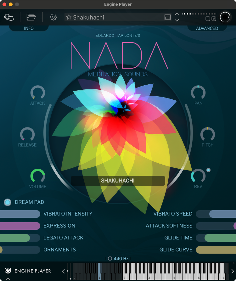 また日本の琴やインドのバンスリ、アルメニアのドゥドゥクといった民族楽器も多数収録されており、これらの多くにもリアルなレガートが搭載されています。インタフェースには、一般的なAttack、Release、Pan、Pitch、Volume、Reverbといったコントロールのほか、詳細なサウンドメイクを可能にするパラメータが並びます。