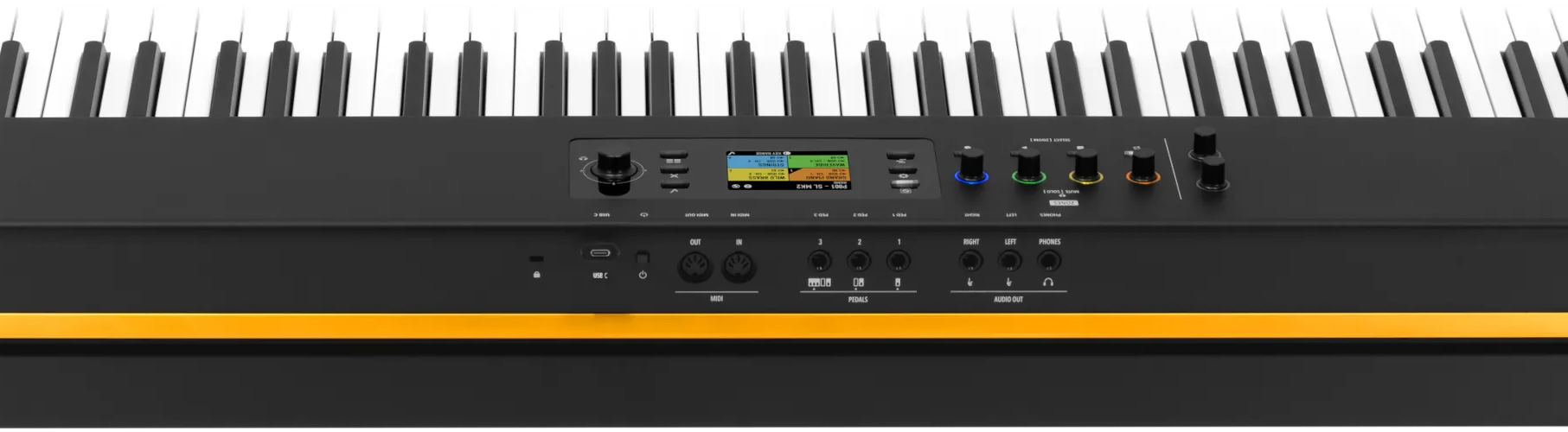 そんなSL MK2シリーズは、音源を搭載したステージピアノとして世界的に人気の高い「Numa X Piano」シリーズの設計思想と、カラー液晶による優れたユーザインタフェースを踏襲しつつ、音源部分を省くことで価格を抑え、DTM用途やPCとの連携に最適化されたシリーズ。無料で使えるのに、定番音源と同等のクオリティを誇るNuma Player 2と一緒に使うことで、Native InstrumentsのNKSのように、ハードウェアとソフトウェアを完璧に統合することも可能となっています。鍵盤のタッチにこだわりつつも、自宅での音楽制作からステージで使うMIDIキーボードとして最適な製品となっているので、どのようなものなのか紹介していきましょう。