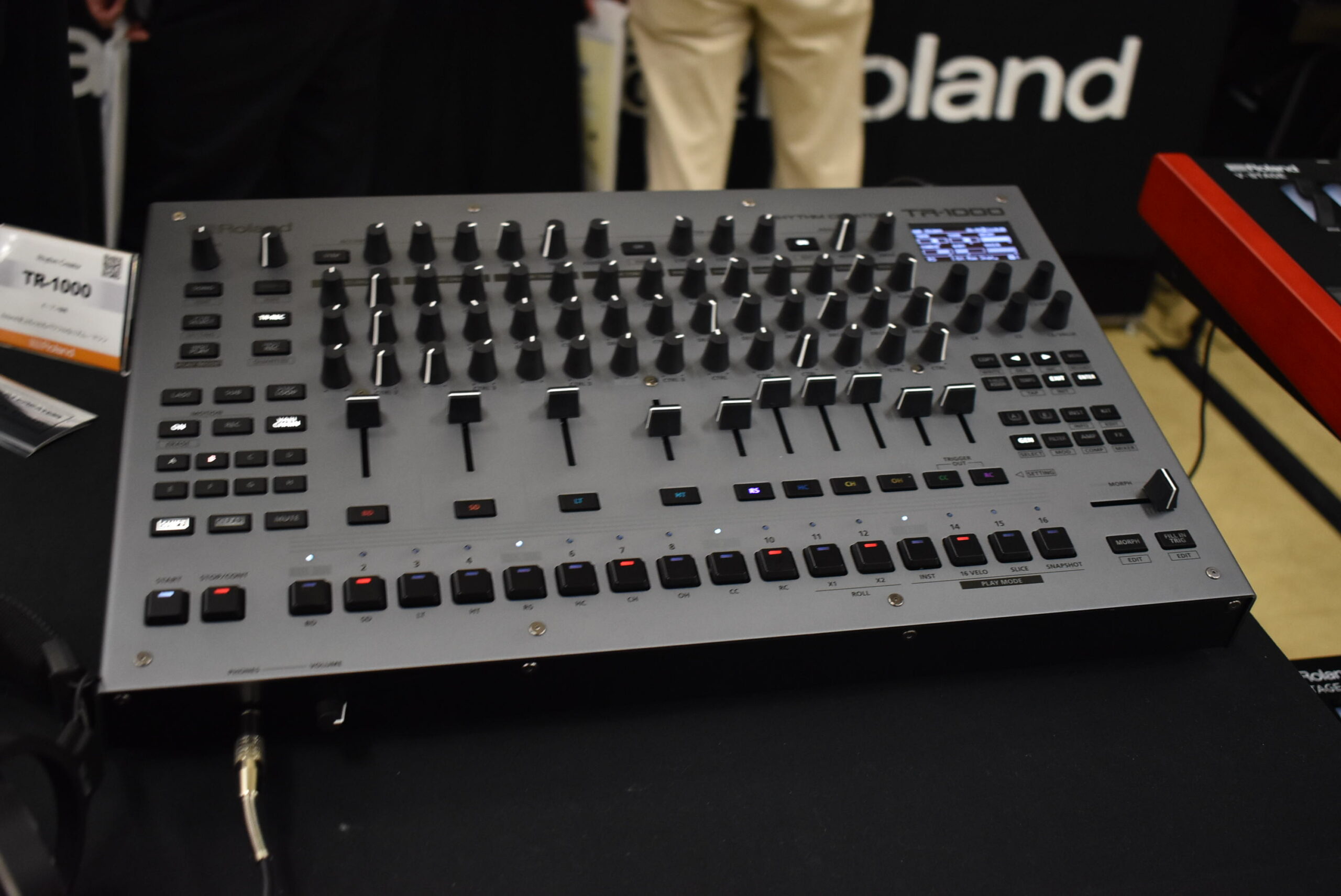 先日「TR-808、TR-909以来42年ぶりにRolandがアナログ回路搭載のフラグシップ機、TR-1000を発表。PCとの接続性も完璧」という記事で大反響のあったTR-1000の実機が楽器博にも展示され、大きな注目を浴びていました。「見た目の迫力がすごい」、「思っていたより大きい」、「アナログサウンドがかっこいい」など実機を触ってのさまざまな声が聞かれましたが、人気で国内での年内出荷分はすべて予約で埋まっているのだとか。