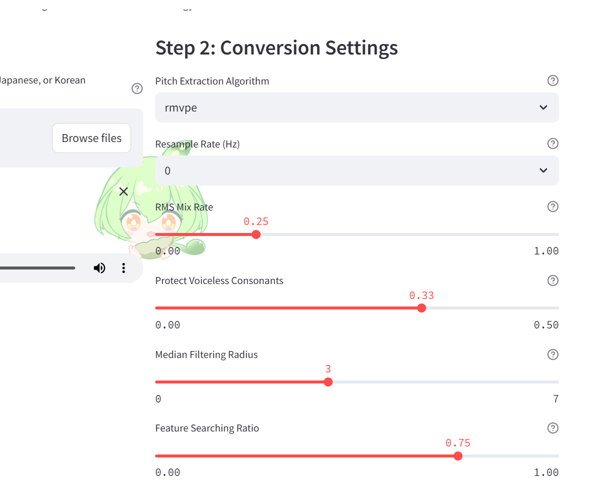 | Pitch Extraction Algorithm | ピッチ抽出アルゴリズム(RMVPEは高速、Crepeは高精度) | rmvpe |