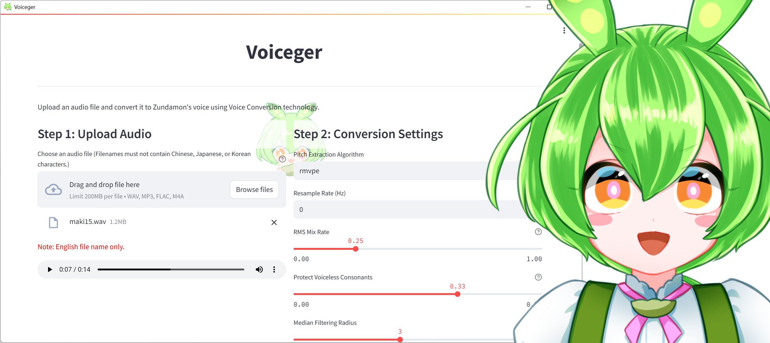 どんな歌声でもずんだもんに変換できる無料ソフト、Voiceger
