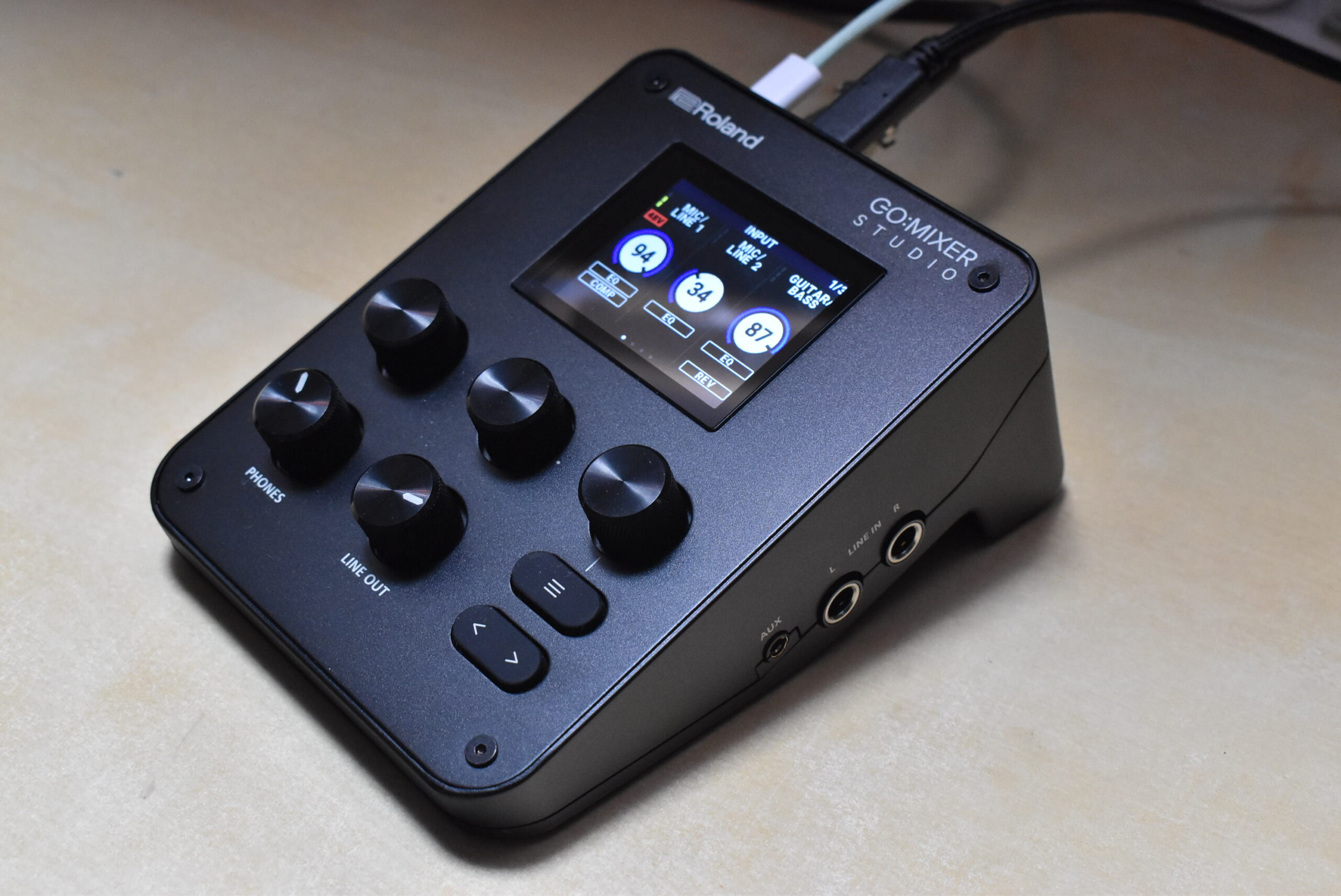 GO:MIXER STUDIOの本体にはDSPを内蔵し、EQやコンプ、リバーブなどをCPUパワーを使わずに利用できるのもポイントです。中でもリバーブはRolandの往年の名機、SRV-2000をエミュレートしている、というのも見逃せない点となっています。発売は1月24日の予定で、オープン価格ですが、実売価格は税込みで44,000円前後です。実際そのGO:MIXER STUDIOを一足早く試すことができたので、どんなオーディオインターフェイスなのか、紹介していきましょう。