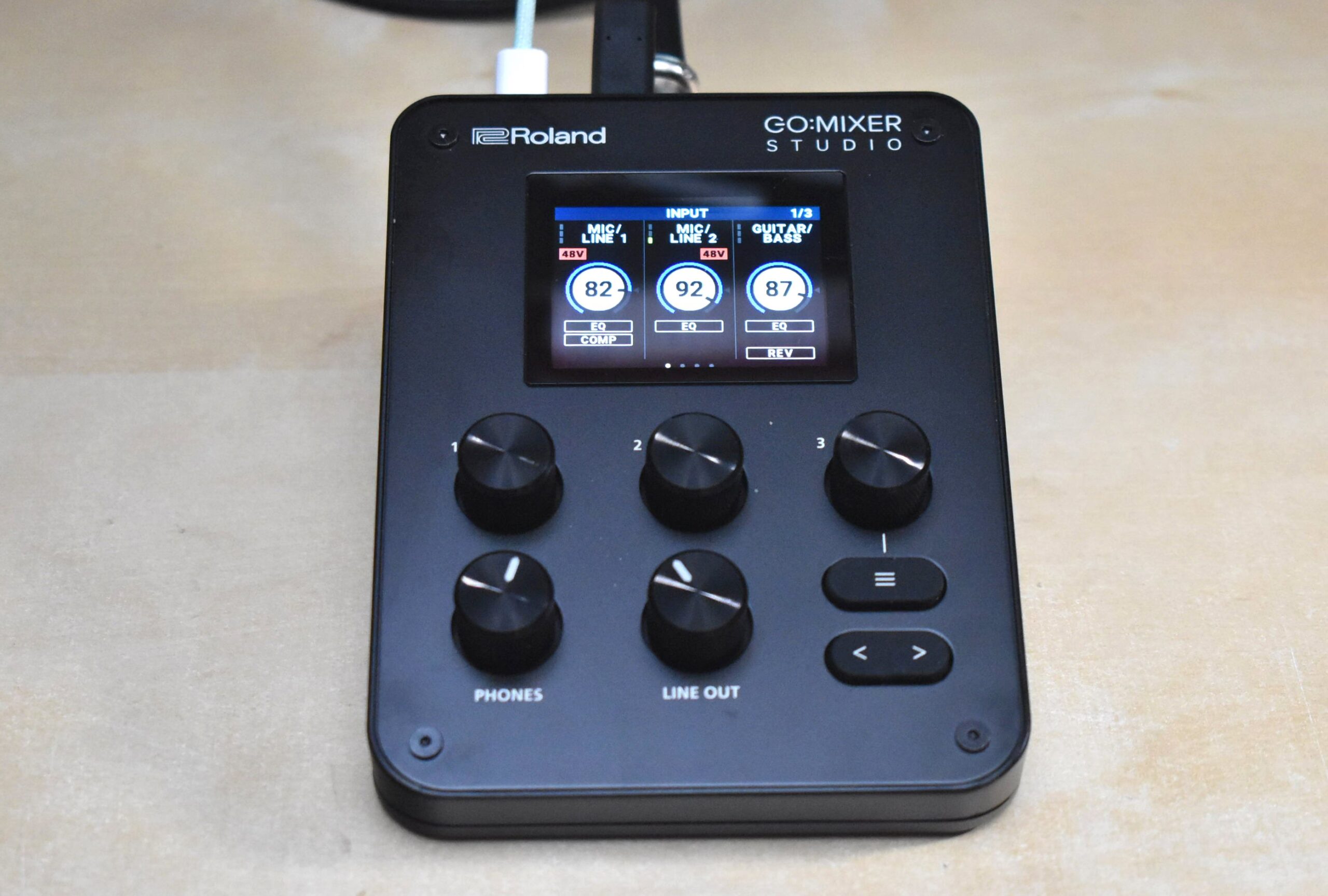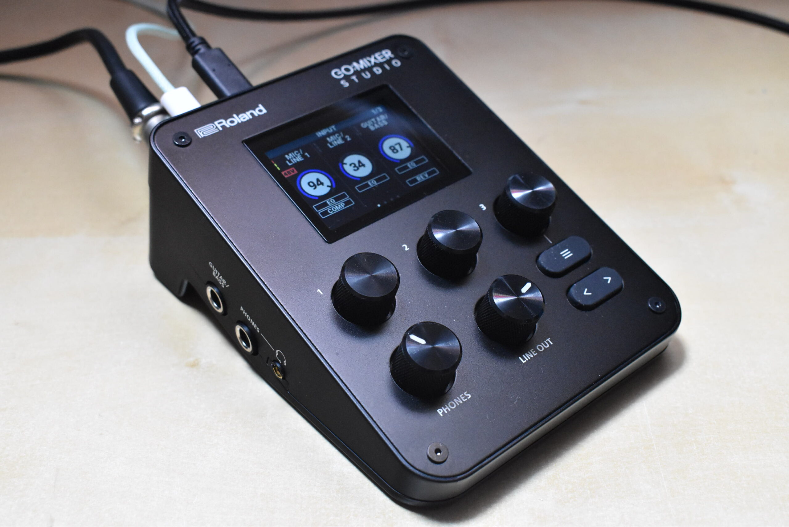 一方で、コンパクトで軽量なボディ、USB Type-Cによる給電、視認性に優れたLCDカラーディスプレイ、三脚取付用ネジ穴の搭載など、アウトドアでの使用も想定した設計になっています。ホームスタジオでの楽曲制作、自宅での配信、屋外でのパフォーマンス撮影、すべてを1台でこなせるのがGO:MIXER STUDIOの強みです。