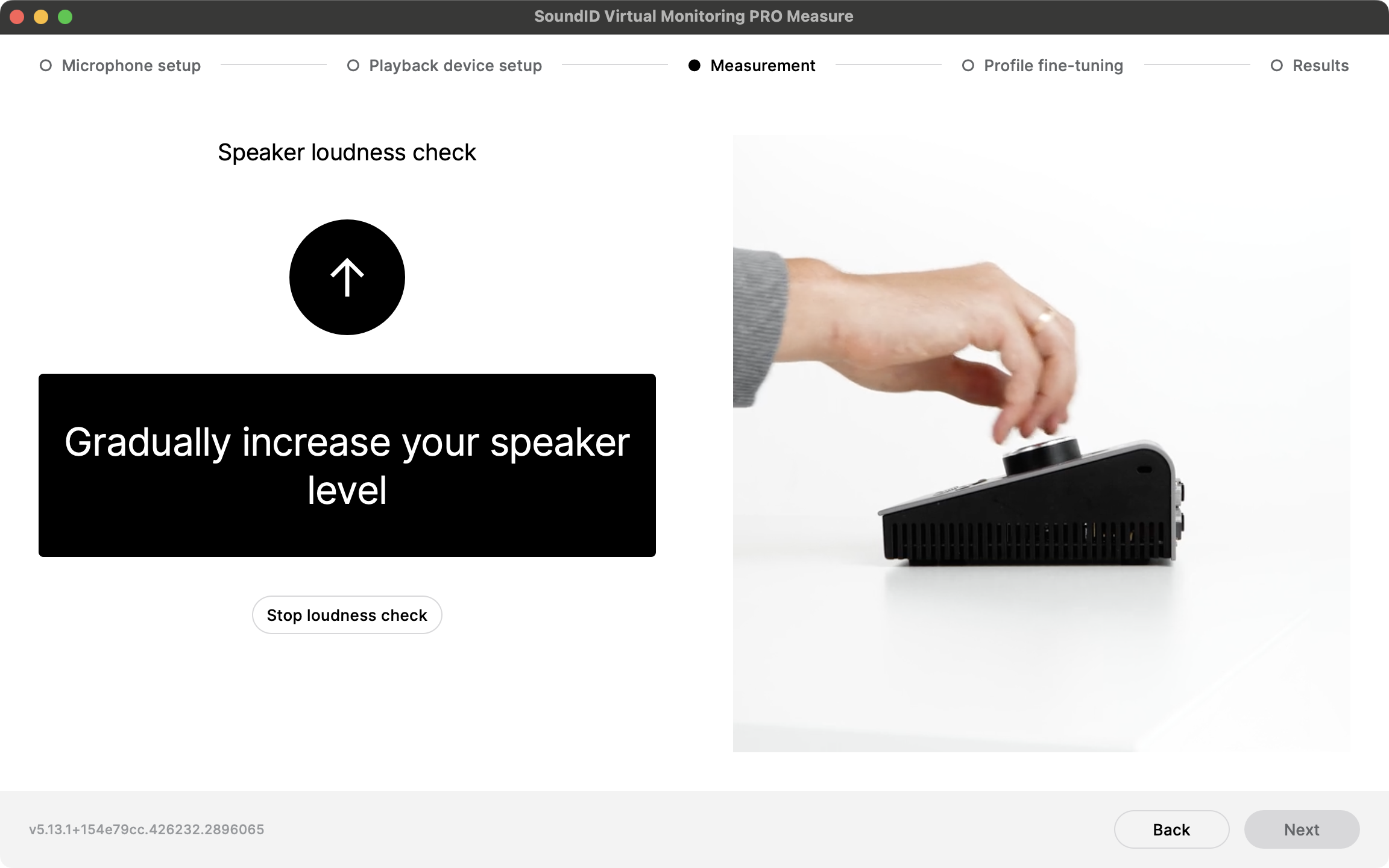 ここまでくれば、後もう少し。次にスピーカーの音量を指示通り、上げたり、下げたりして、適切なボリュームに設定していきます。
