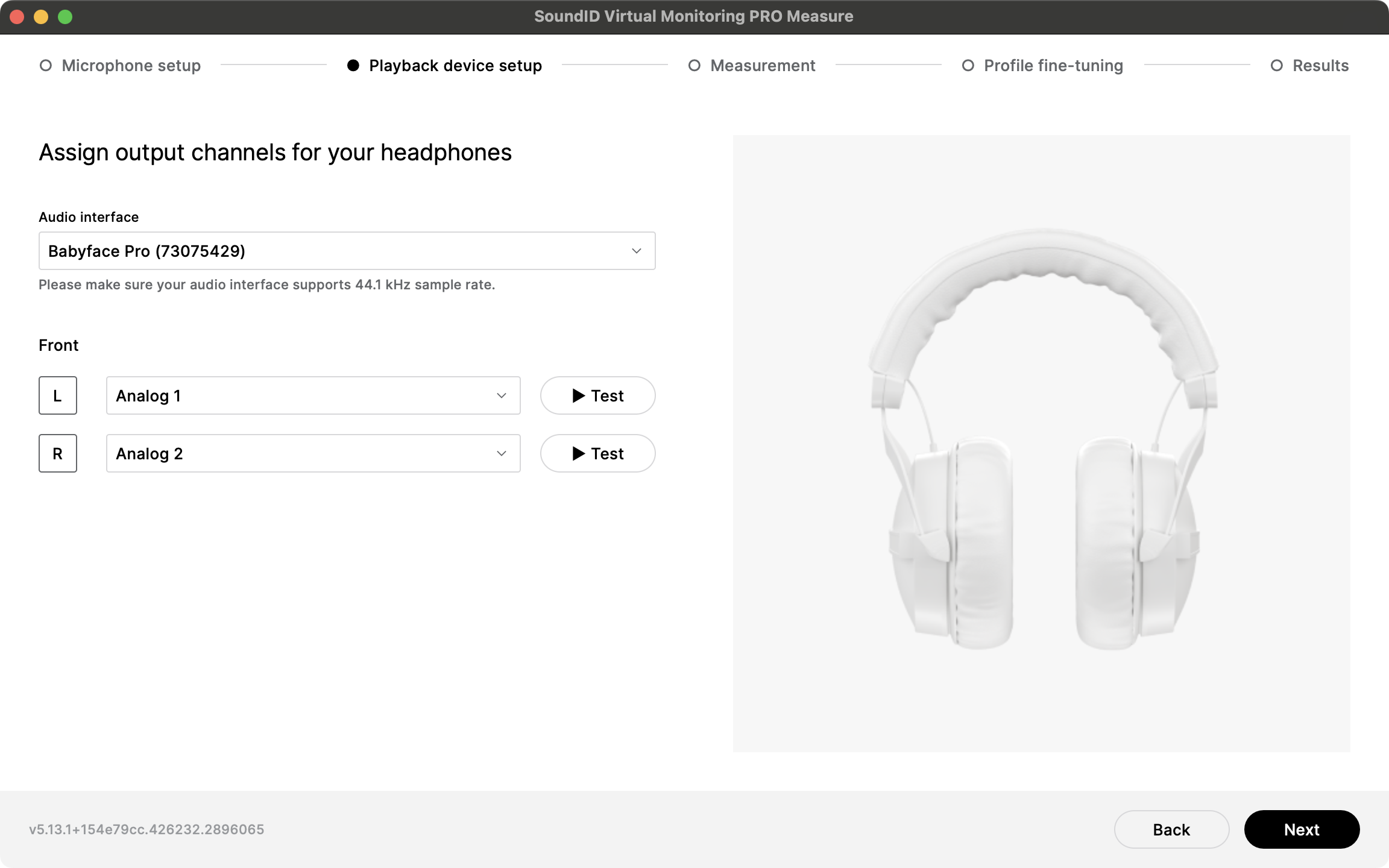 次にオーディオインターフェイスに繋がっているヘッドホンのチェックです。同様にテストサウンドが流れるので、聴こえれば「Next」をクリックして次に進みます。