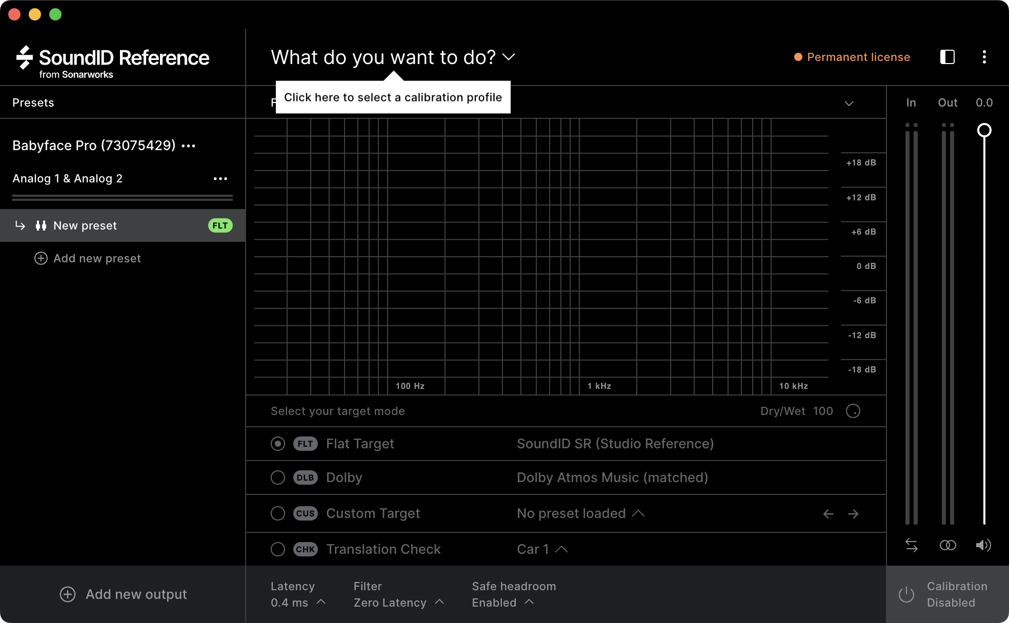 自分のプリセットができた後は、また画面上部に「Click here to select a calibration profile」という吹き出しが表示されるので、「What do you want to do?」をクリック。