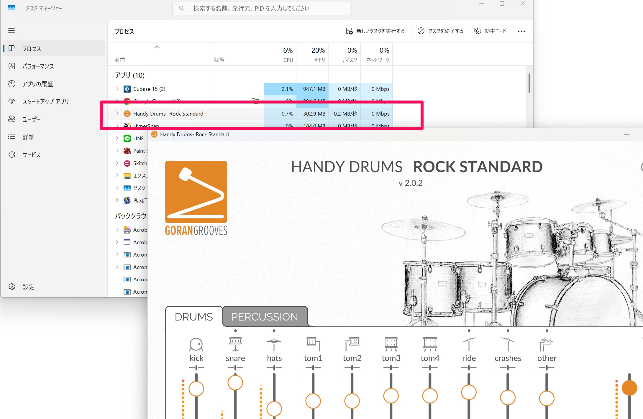 動作も軽快で、複数のインスタンスを立ち上げても問題なく動作します。CPU負荷も非常に軽いので、あえて複数のHandy Drumsを同時に立ち上げて使ってもいいし、他のプラグインと組み合わせて使う際にも安心です。