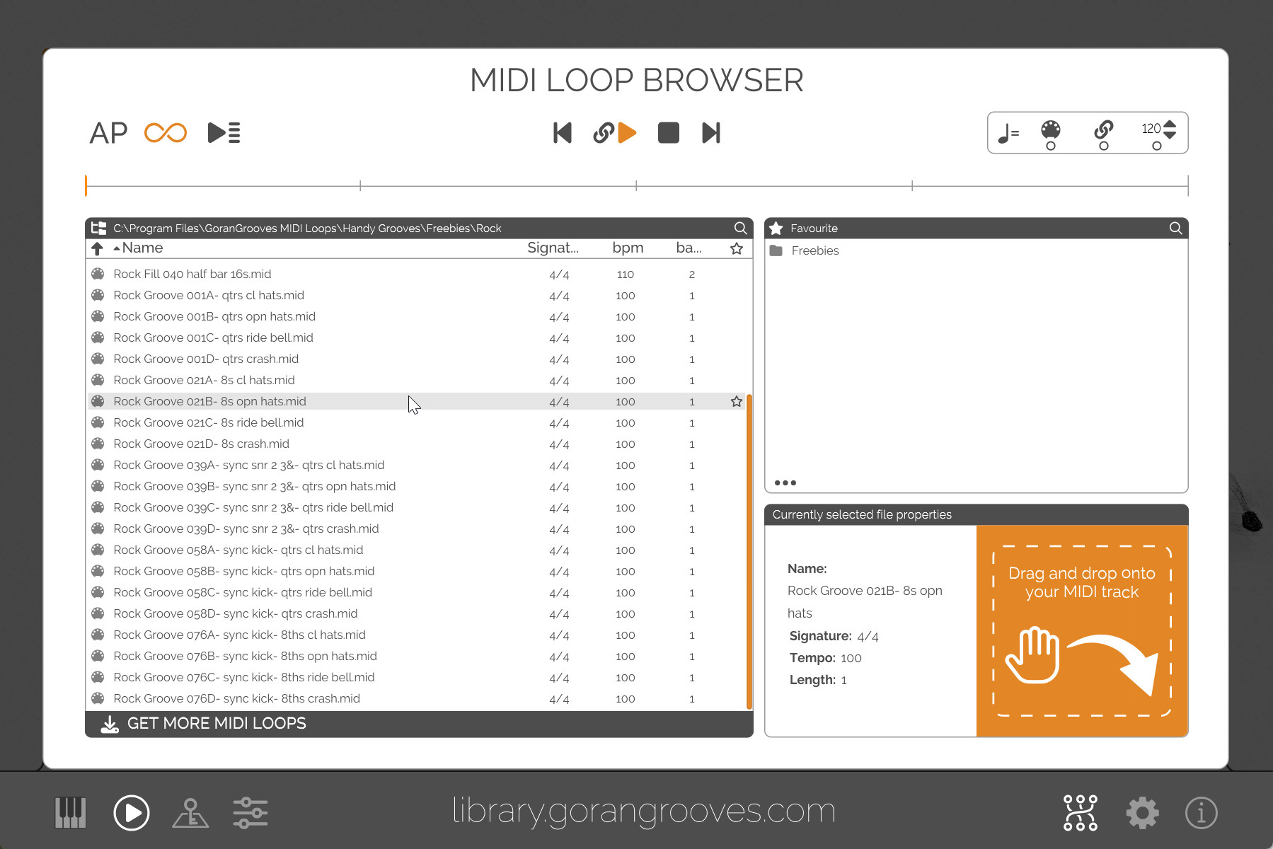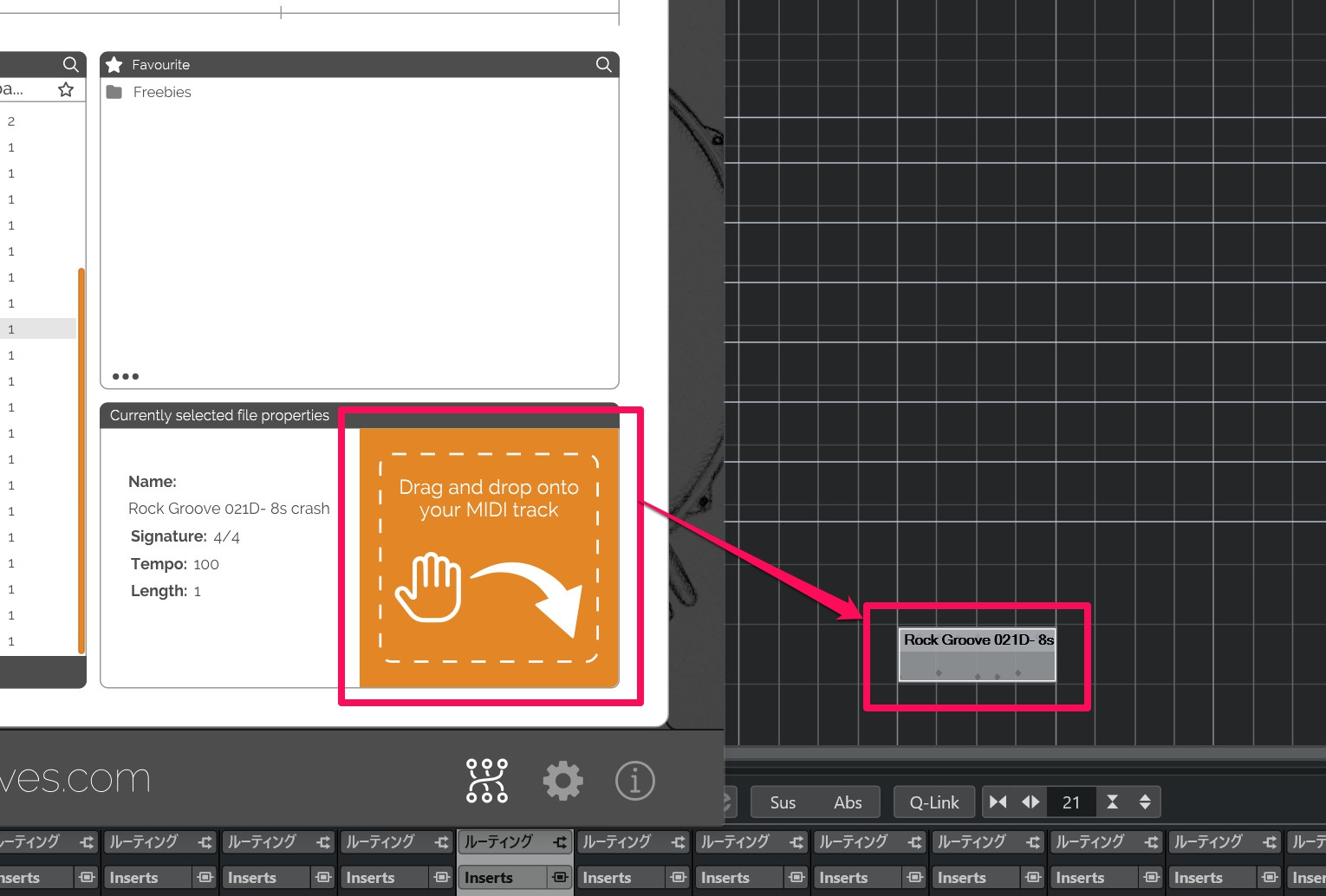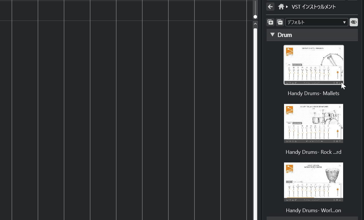 さらに便利なのが、付属のMIDIパターンだけでなく、自分のパソコン内にある別のMIDIファイルも読み込んで試聴できる点です。すでに作成済みのMIDIパターンや、他の音源で使っていたフレーズなどを読み込んで、Handy Drumsシリーズでどう鳴るかを確認できます。音源選びの際に非常に役立つ機能といえるでしょう。