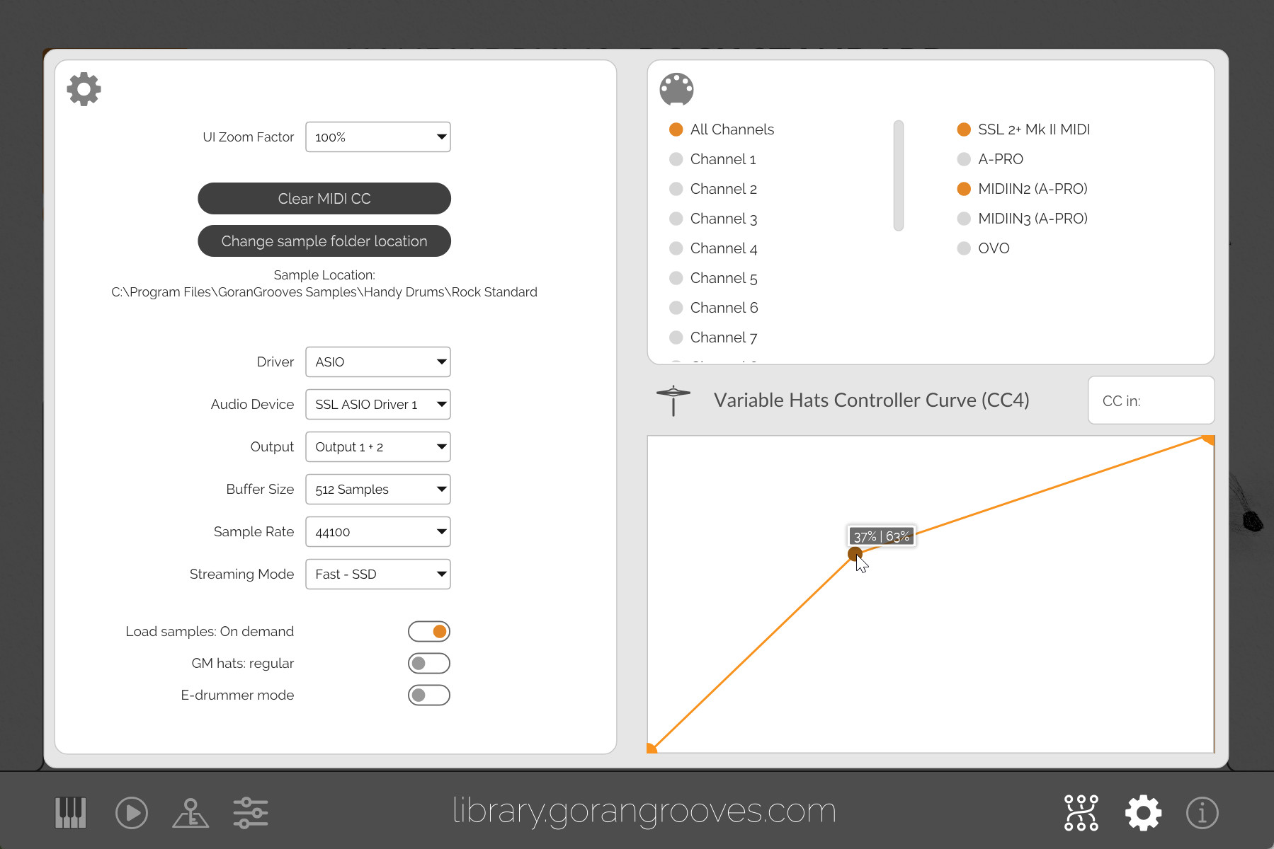 Handy Drumsシリーズは、MacとWindowsの両方に対応しています。スタンドアロンでも動作するため、DAWを起動せずに演奏を楽しむこともできます。前述したように、電子ドラムやMIDIパッドと組み合わせて練習用として使うことも可能です。