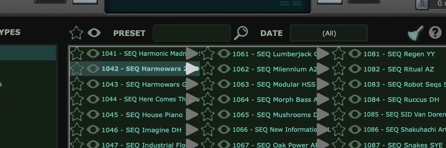 そしてNKS対応でもありつつ、プリセット名の横にある再生ボタンにマウスオーバーするだけで音色をプレビューできる機能を搭載しています。従来のようにプリセット名をクリックしてロードを待ってから鍵盤を弾くという手間が必要なく、マウスカーソルを合わせるだけで、その音がどのようなフレーズや質感を持っているかが瞬時に再生されます。そしてプレビュー機能を使わなくとも、矢印キーで次々と音色を切り替えても爆速で音色が切り替わるので、ストレスを感じない作りとなっています。
