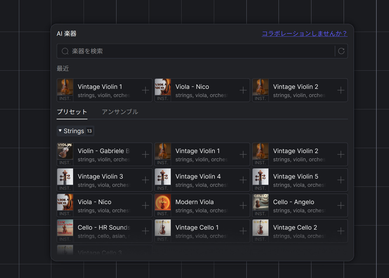 ACE Studioのベータ版を扱った2025年7月の記事では、AI楽器としてバイオリン3種類のみが搭載されていると紹介しました。