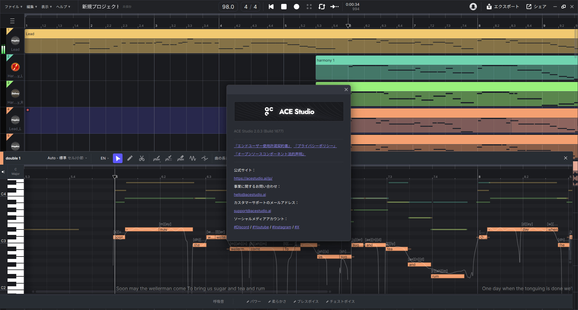 DTMステーションでも以前に2回ほどACE Studioを取り上げたことがありましたが、先日そのACE Studioが2.0へとメジャーバージョンアップするとともに、ディリゲントが日本の正規代理店として流通を開始し、日本国内での展開を正式にスタートさせたのです。国内で展開するのは完全買い切り型の永久ライセンス版で、上位版のACE Studio Artist Pro(税込価格:89,100円)と通常版のACE Studio Artist(69,300円)の2種類。また12月25日~1月31日まで発売記念イントロセールとしてそれぞれ80,190円、62,370円で展開を行っています。そこで、ACE Studio 2.0の新機能を中心に、ACE Studioとはどんなソフトなのか改めて紹介してみましょう。