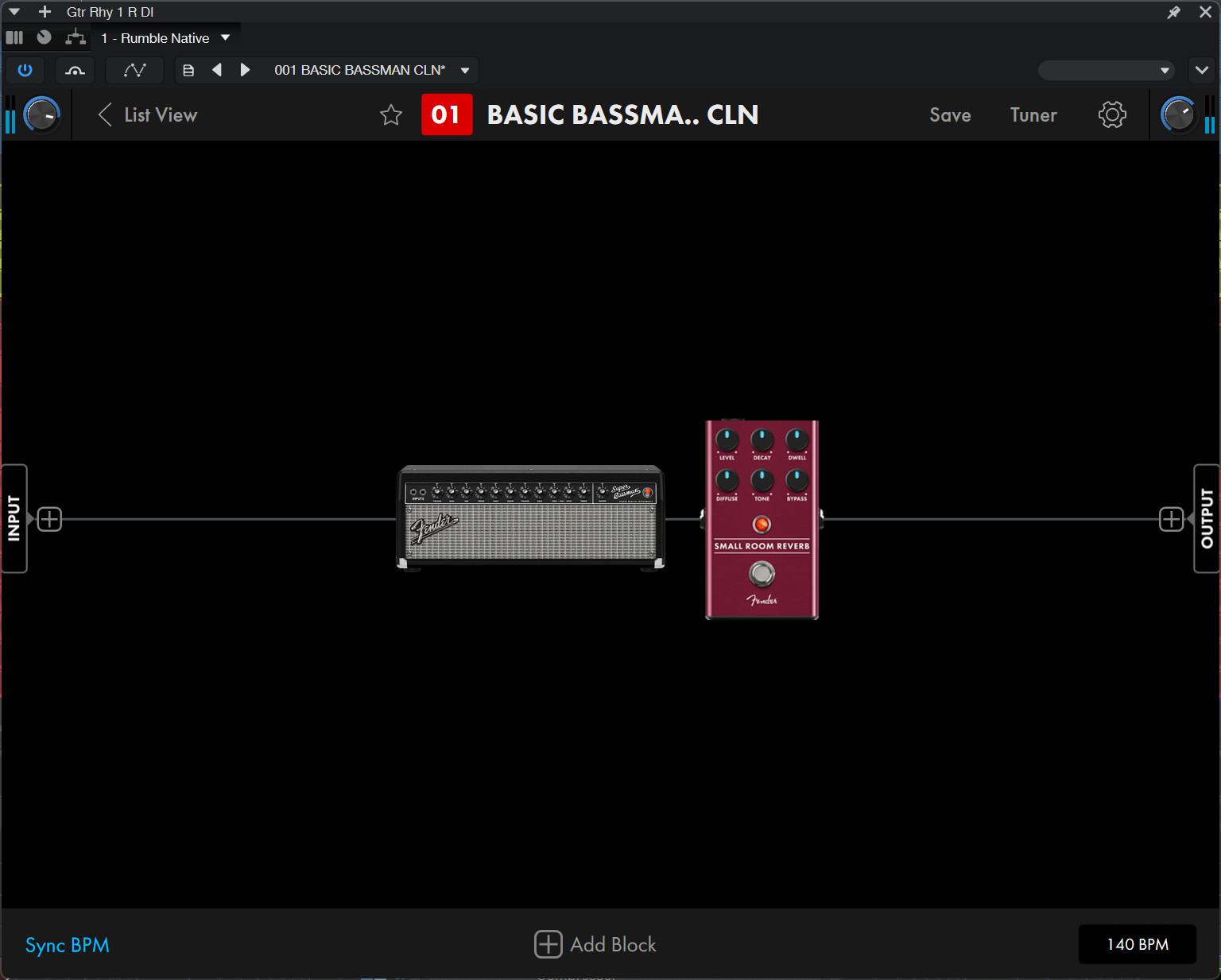 実際にインサートして鳴らしてみると、とりあえず立ち上げて即それっぽい音が出るのが分かります。これまでStudio Oneに付属していたAmpireとはキャラクターが明確に違い、Fenderらしい独特のトーンが簡単に得られます。ギターやベースを演奏するDTMユーザーにとって、Fender公式のアンプとエフェクトが最初から統合されているのは大きなメリットといえそうです。