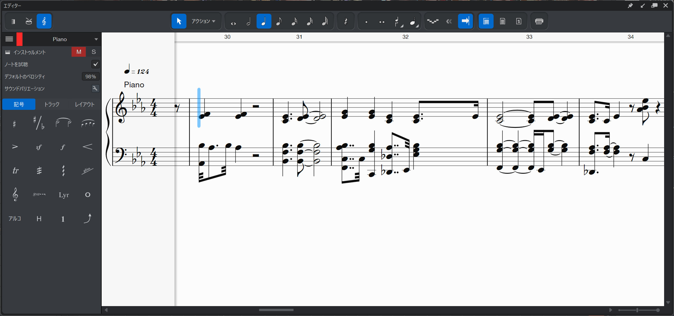 これをピアノロールで開いてみると、しっかりとピアノが耳コピならぬAIコピされているわけですが、チェックしてみたところほぼ完ぺきな感じでMIDI化されていました。