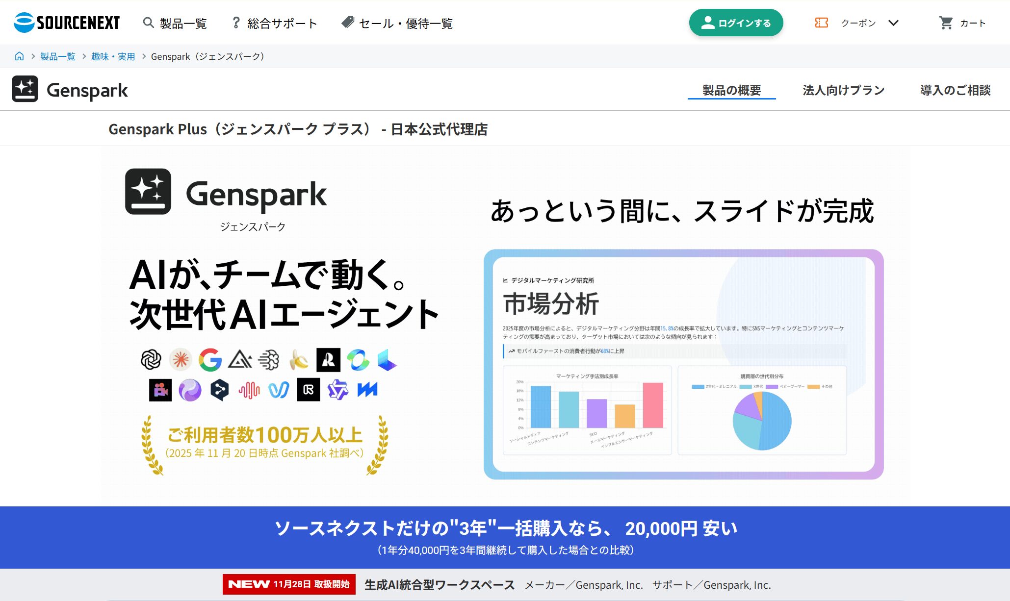 対象商品:Genspark Plus 1年版・3年版 いずれも対象