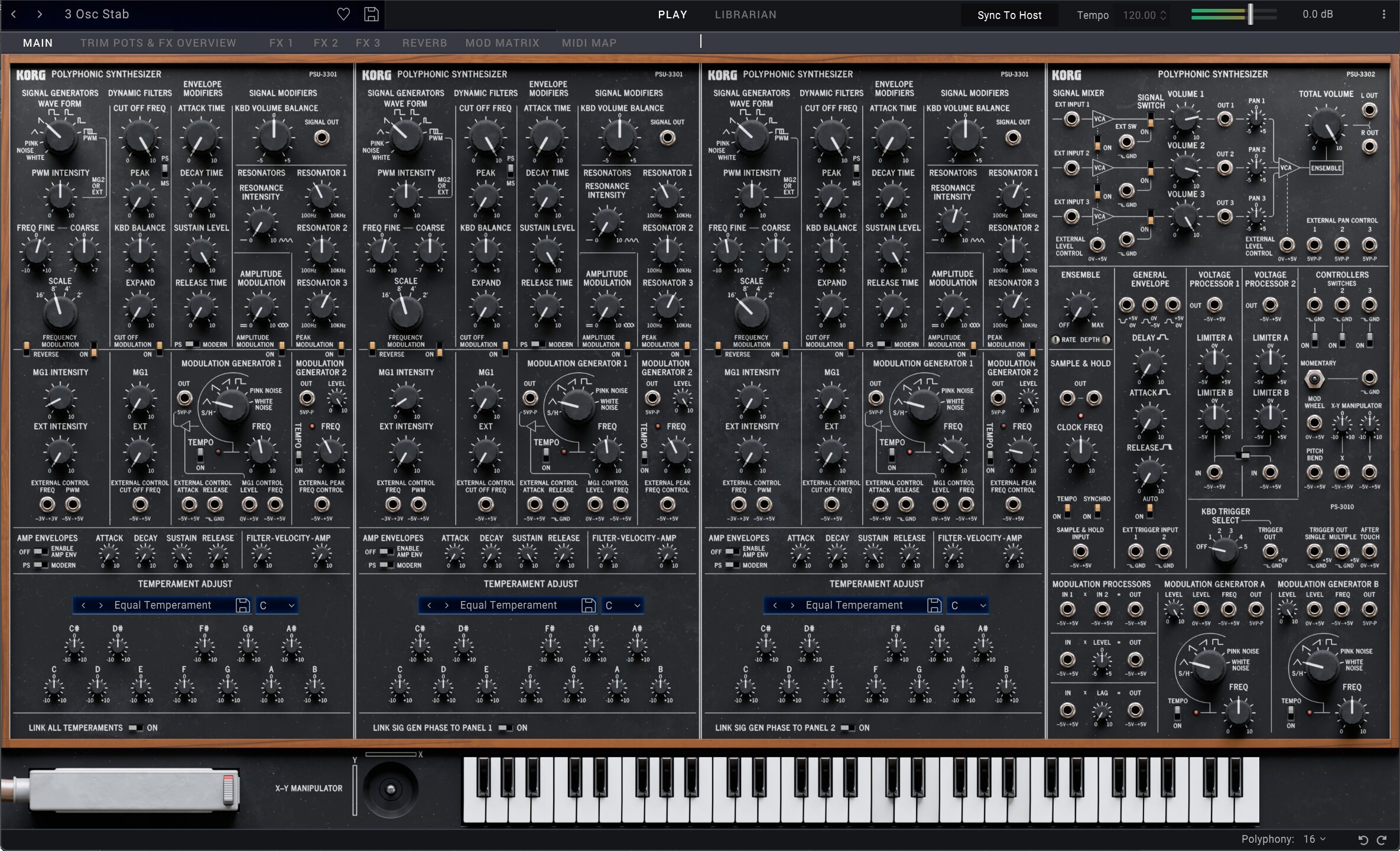 また、3つのPSU-3301パネル間でトップ・オクターブ・オシレーターの位相をリンクするスイッチも追加しました。これはビンテージオルガンやストリング・シンセのような音色を生み出すのに非常に効果的です。これはモデリングを担当したエンジニアのアイデアで、彼自身がVox Super Continentalのモデリングも担当したトップ・オクターブ回路の専門家でした。全体的な哲学としては、PS-3300の独特なキャラクターを守りつつ、拡張する際もオリジナルのデザイン思想に沿った形で行うことを徹底しました。
