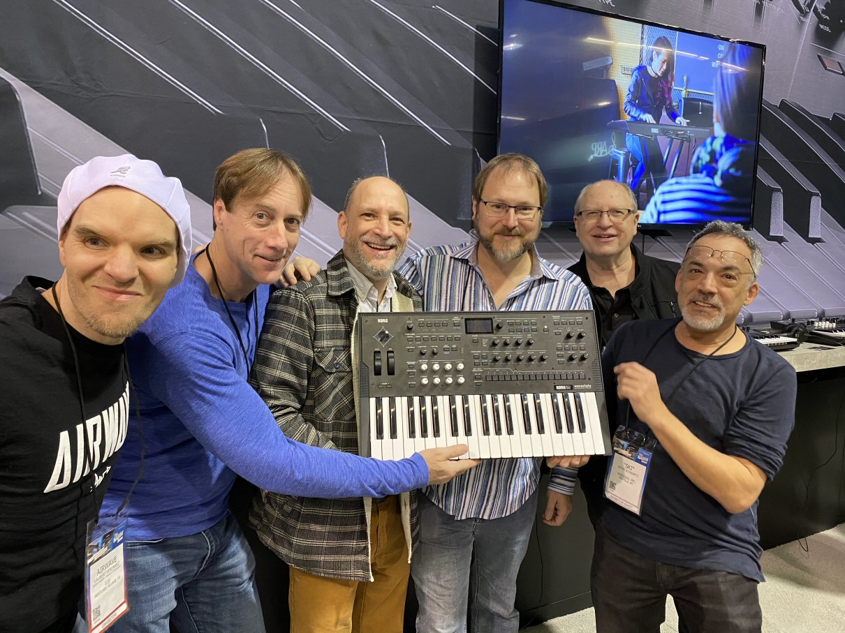 KORG R&D開発チームのメンバー。左からAirwave (voicing contractor)さん、 Bill Jenkins (engineer)さん、Andy Leary (engineer and manager)さん、Danさん、John Bowen (voicing contractor)さん、Peter Schwartz (voicing contractor)さん