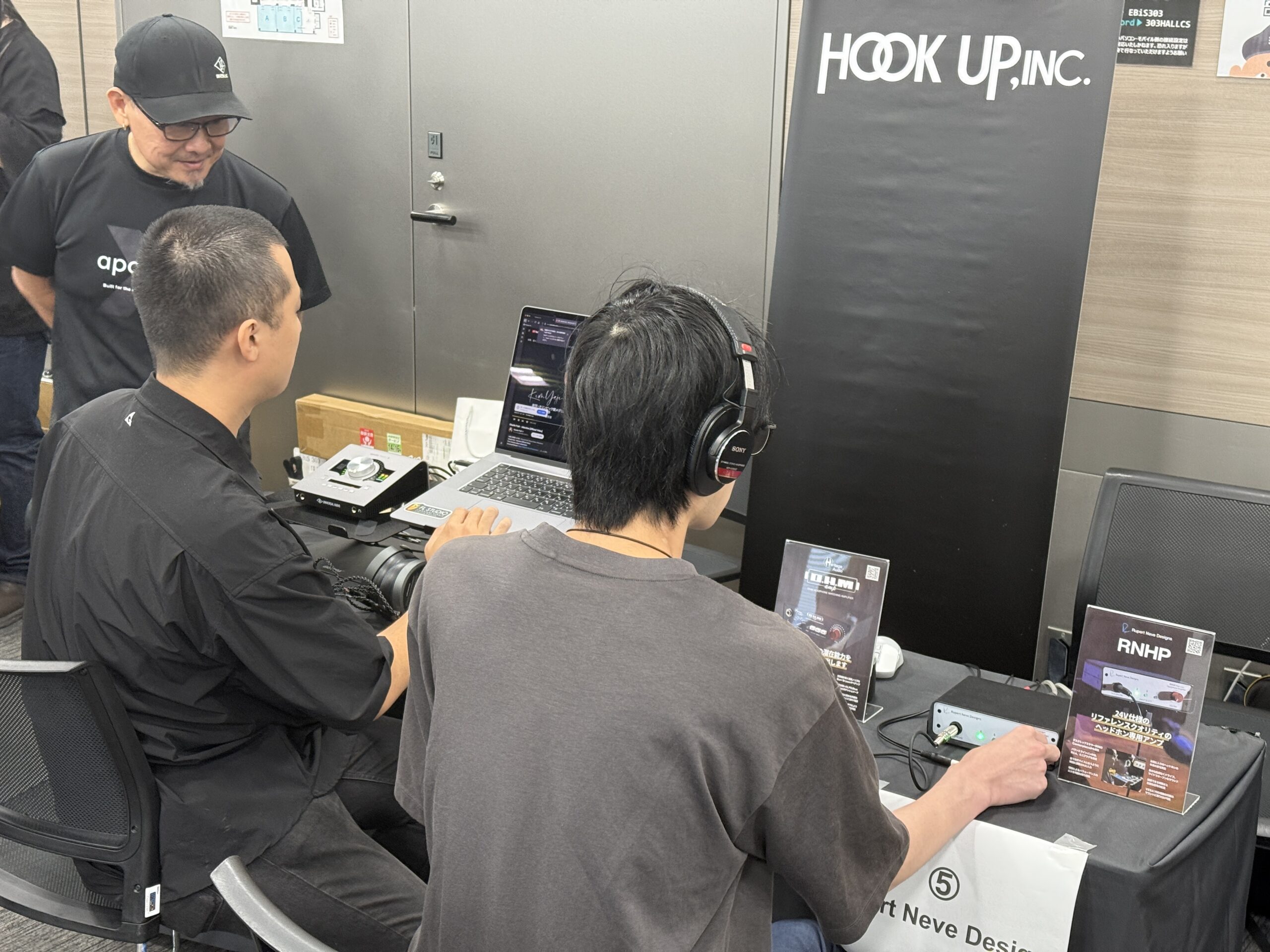 このイベントが一般的なオーディオイベントと大きく異なるのは、純粋な音楽制作者の視点で機材を比較できる点。普段自分が制作で使い慣れているヘッドホンやイヤホンの持ち込みが推奨されています。自身の基準となる音と最新機材を同じ条件で比較することで、音の違いや製品の特性をより具体的かつ正確に把握できるようになっています。