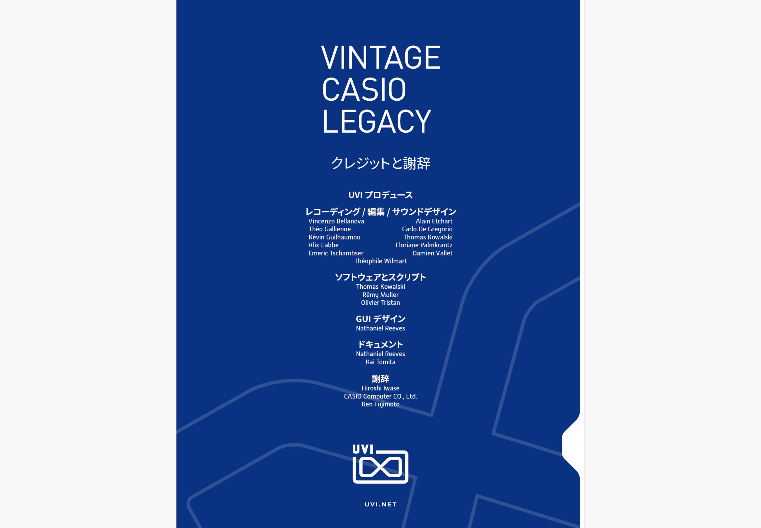 Alainカシオは、私にとってファーストシンセです。10代のころに手にしたのがカシオのキーボードで、あれがあったから音楽制作の世界に踏み込めた。個人的に非常に強い思い入れがあります。だからこそ、VINTAGE CASIO LEGACYはUVIとして絶対に作らなければいけないと思っていた。構想自体は随分前からありましたが、カシオの公式協力が得られると分かったとき、これは本物を作れると確信しました。
