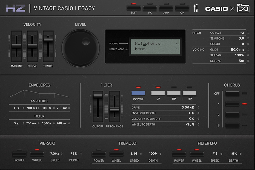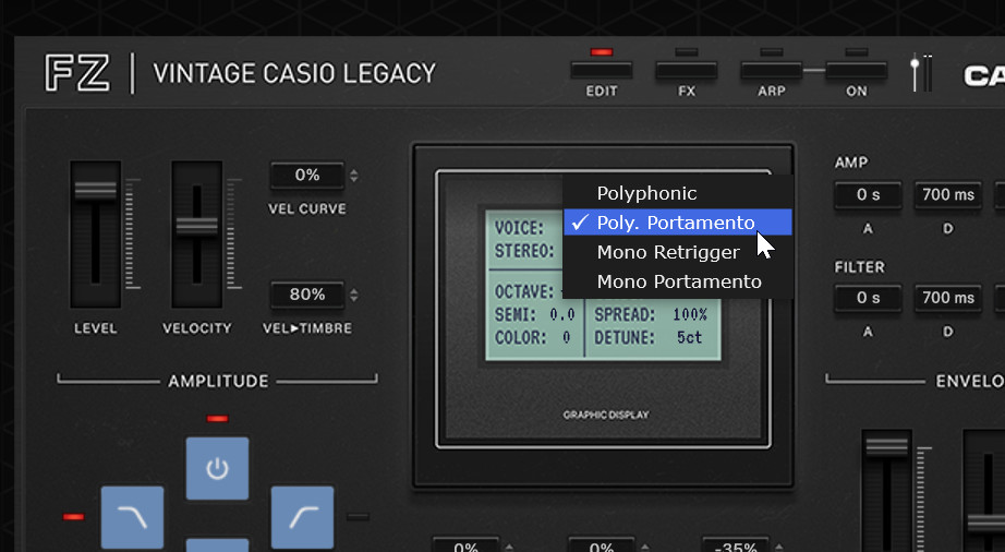 VINTAGE CASIO LEAGCYでは実機にはなかったポリフォニックでのポルタメント機能も搭載されている