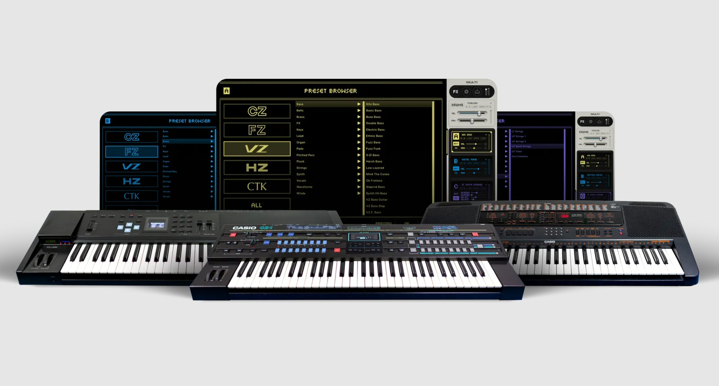 カシオの名機を丸ごとサンプリングした音源ライブラリ「VINTAGE CASIO LEGACY」が、UVIから発売されました。CZFZVZHZCTK、そしてRZという歴代のビンテージカシオ機6機種を収録し、UVIとして過去最大となる11万を超えるサンプルを誇るこの大作は、カシオ計算機の公式協力を得て制作された、まさに決定版ともいえる内容です。