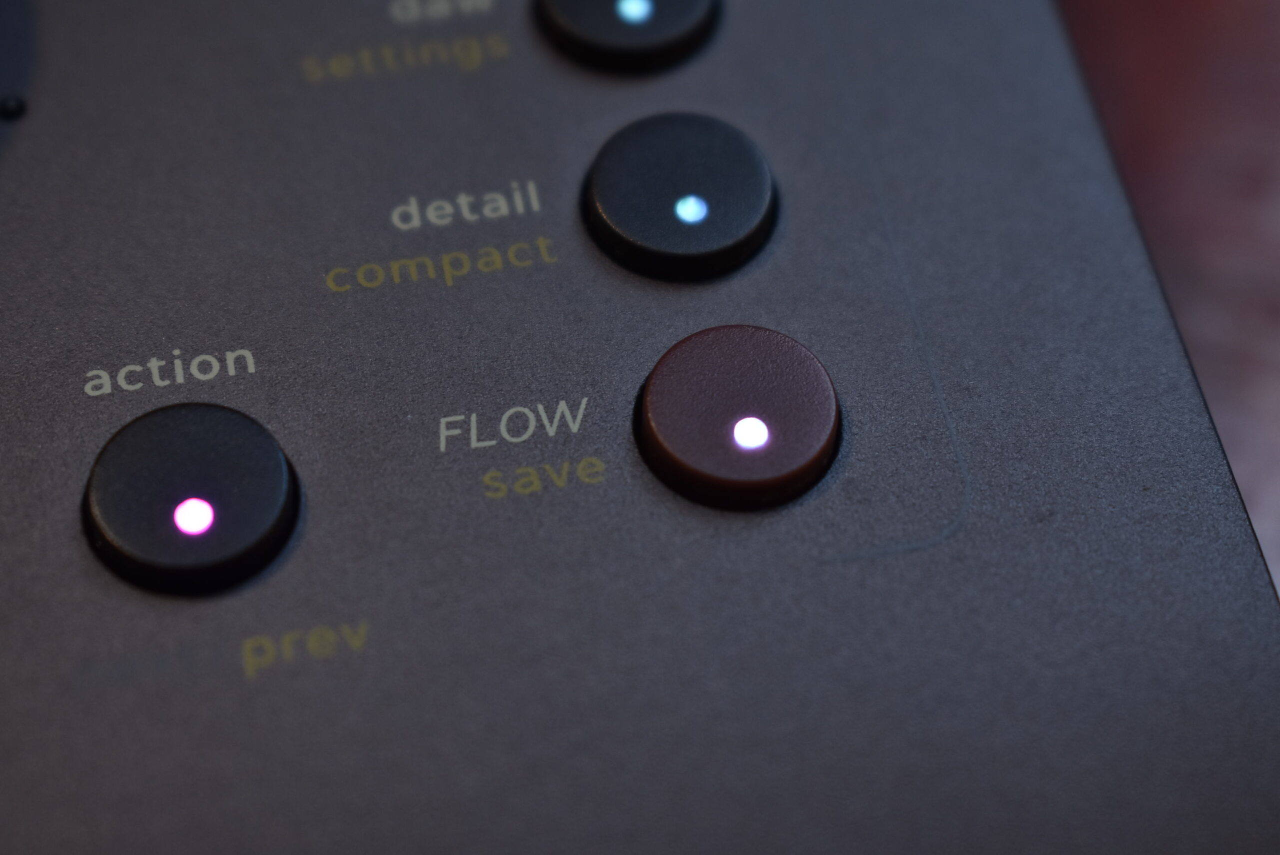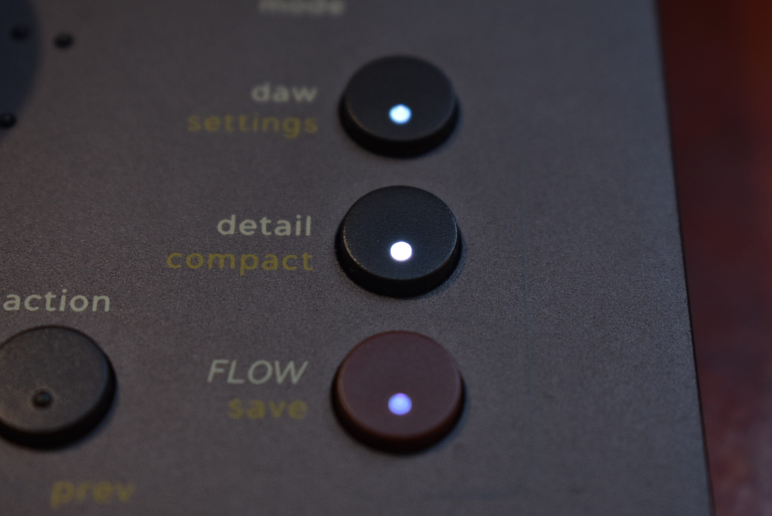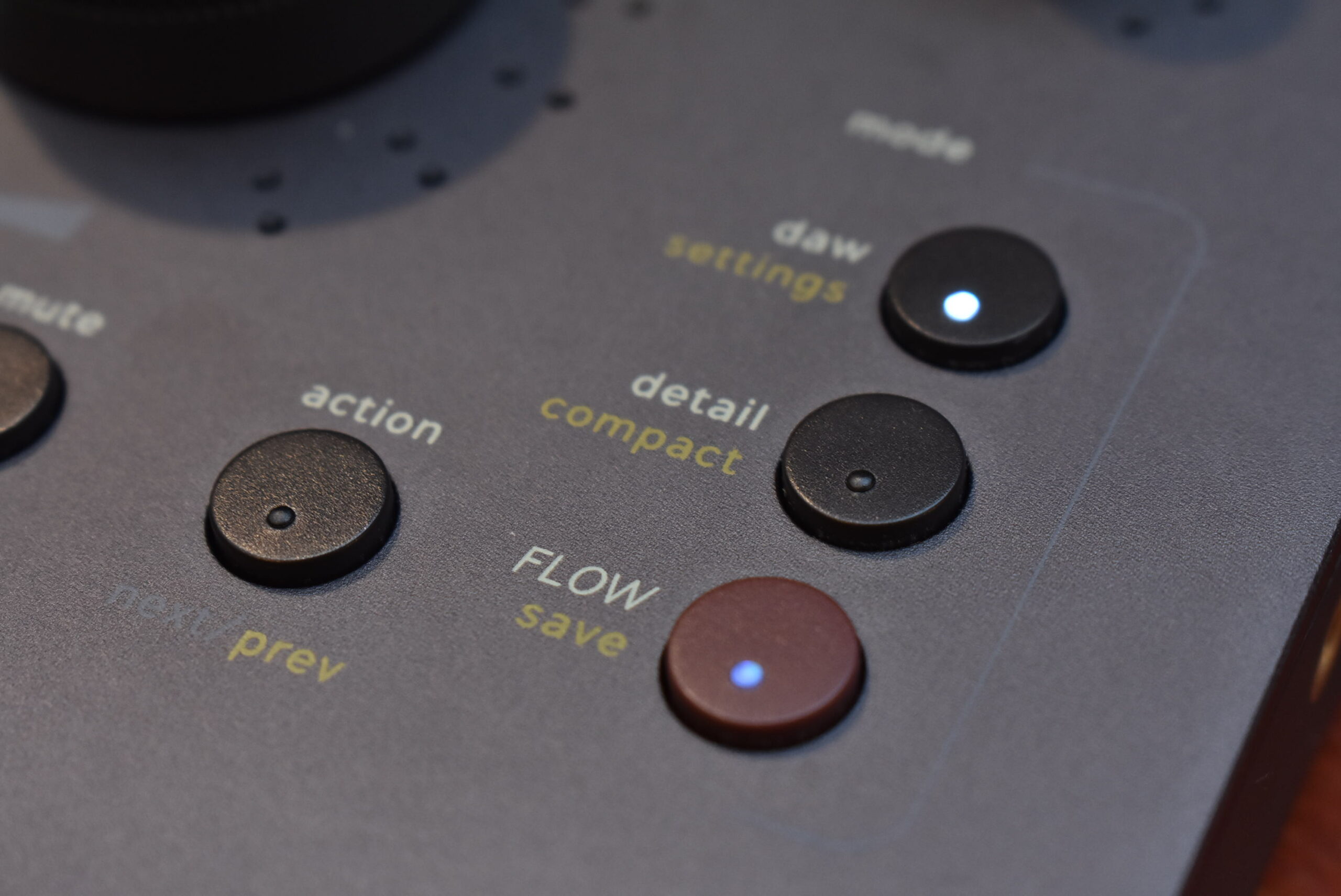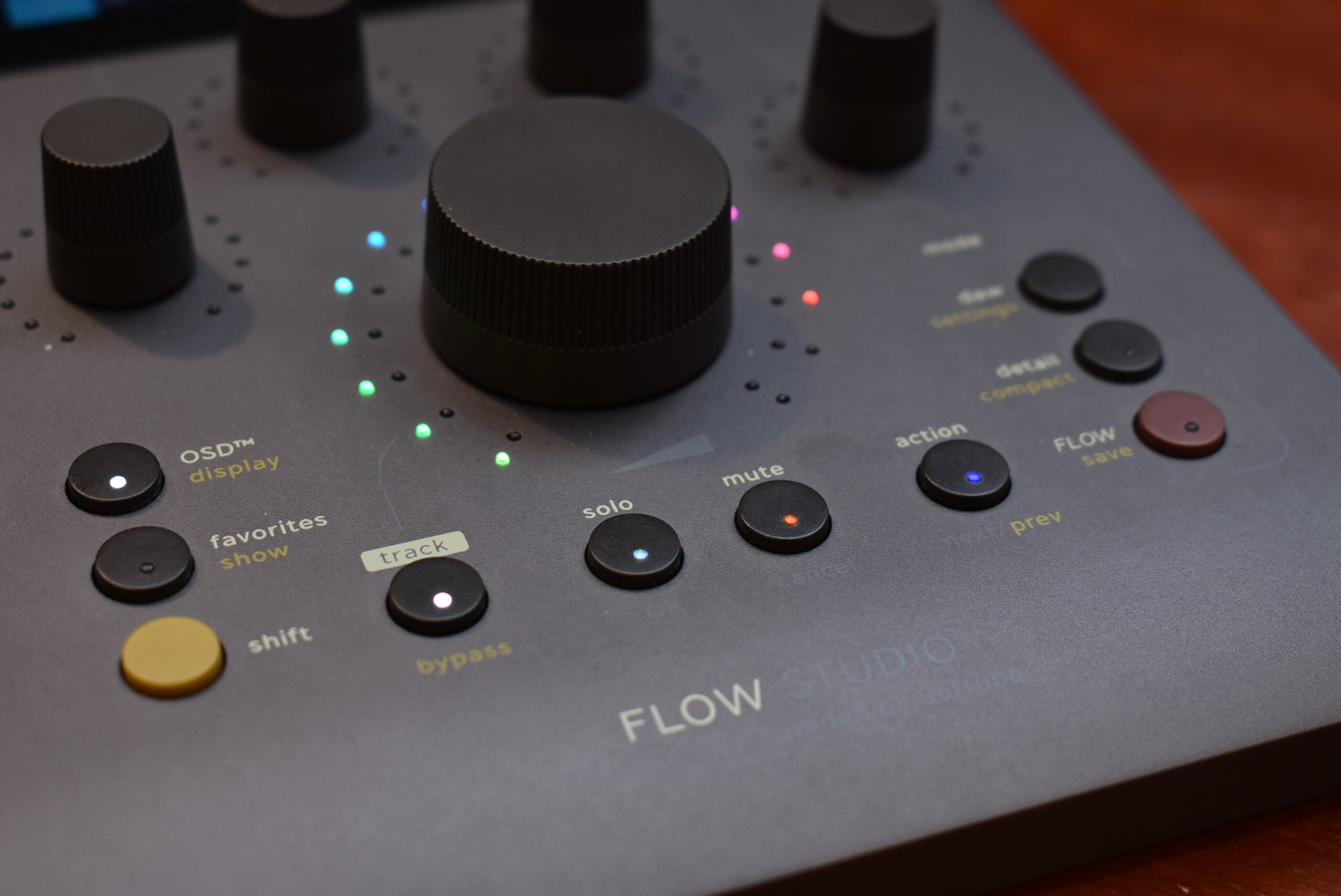 Flow Studioの操作は、DAW、Flow、Detailという3つのモードを目的に応じてフロントパネルのボタン1つで切り替える構造になっています。実際のミックス作業の流れに沿って、基本的な使い方を見ていきましょう。
