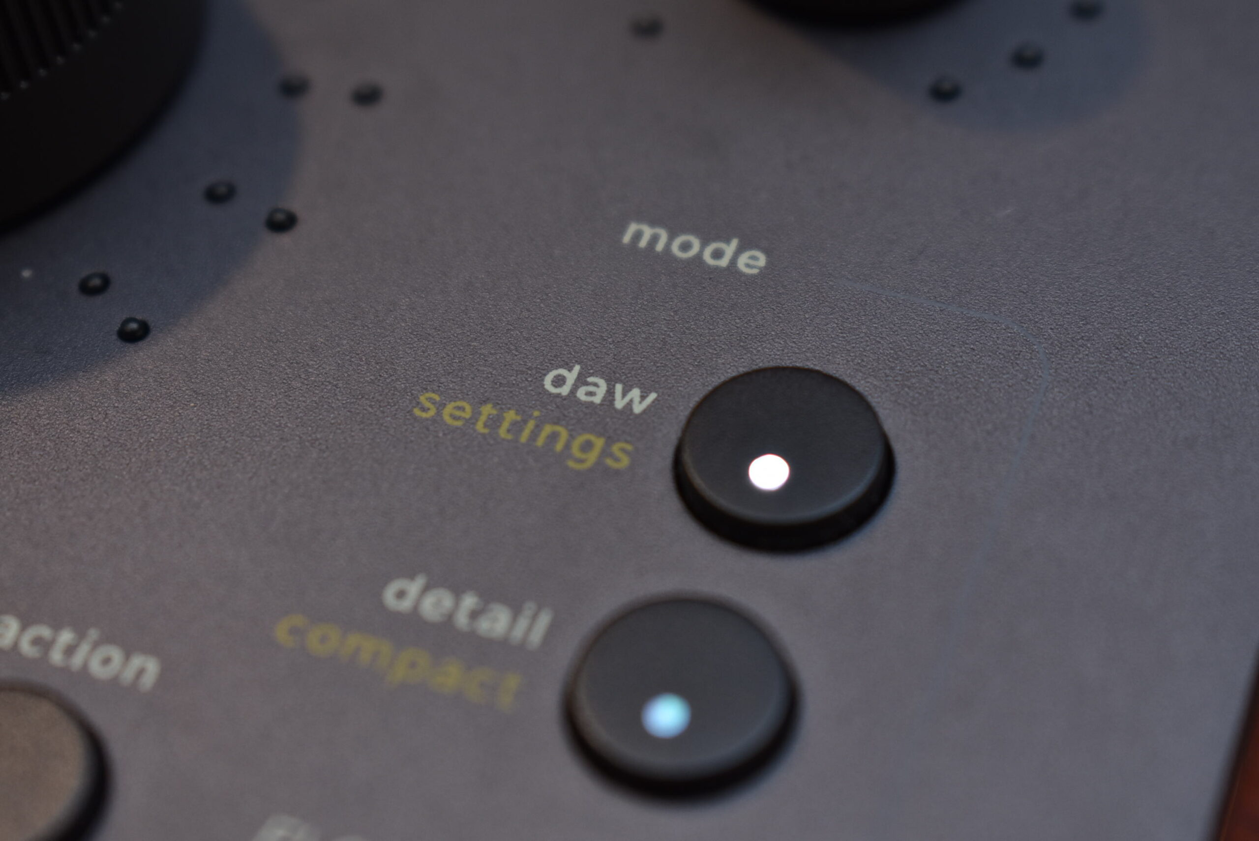 さて準備ができたら、まずは「DAWモード」の出番です。これはDAW側の主要パラメータを直接操作するためのモードで、一つひとつのノブに機能を割り当てるといった面倒なマッピング作業は一切不要となっています。